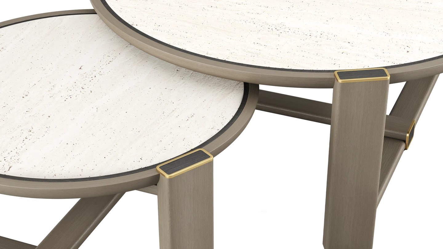 "The CAMBRIA Coffee Table is an icon in its own right, combining circular and square shapes. The stone top is striking and it perfectly matches the CAMBRIA Side Table. "