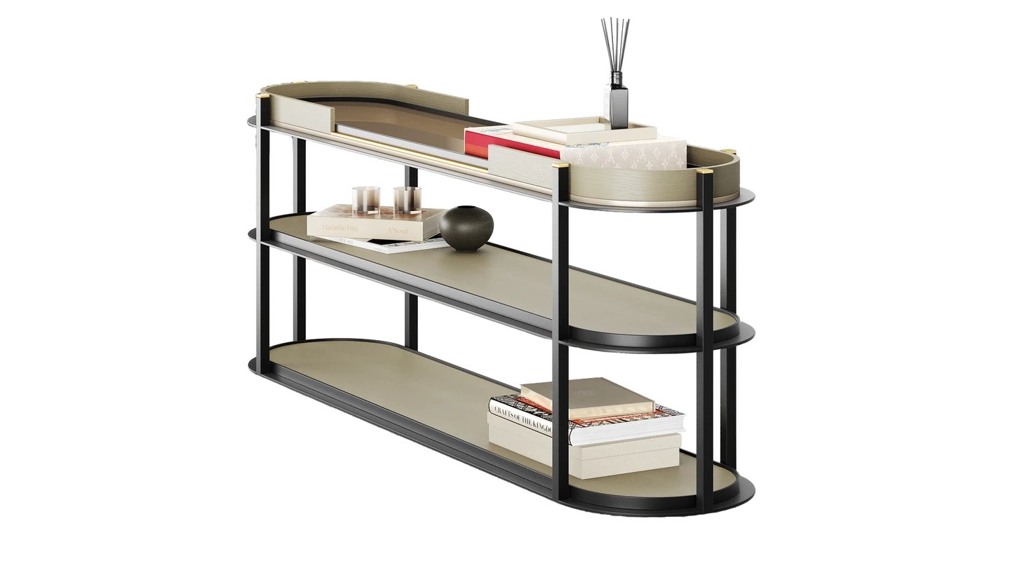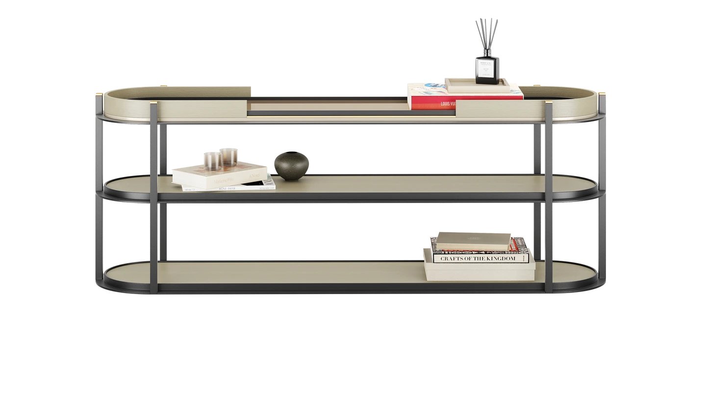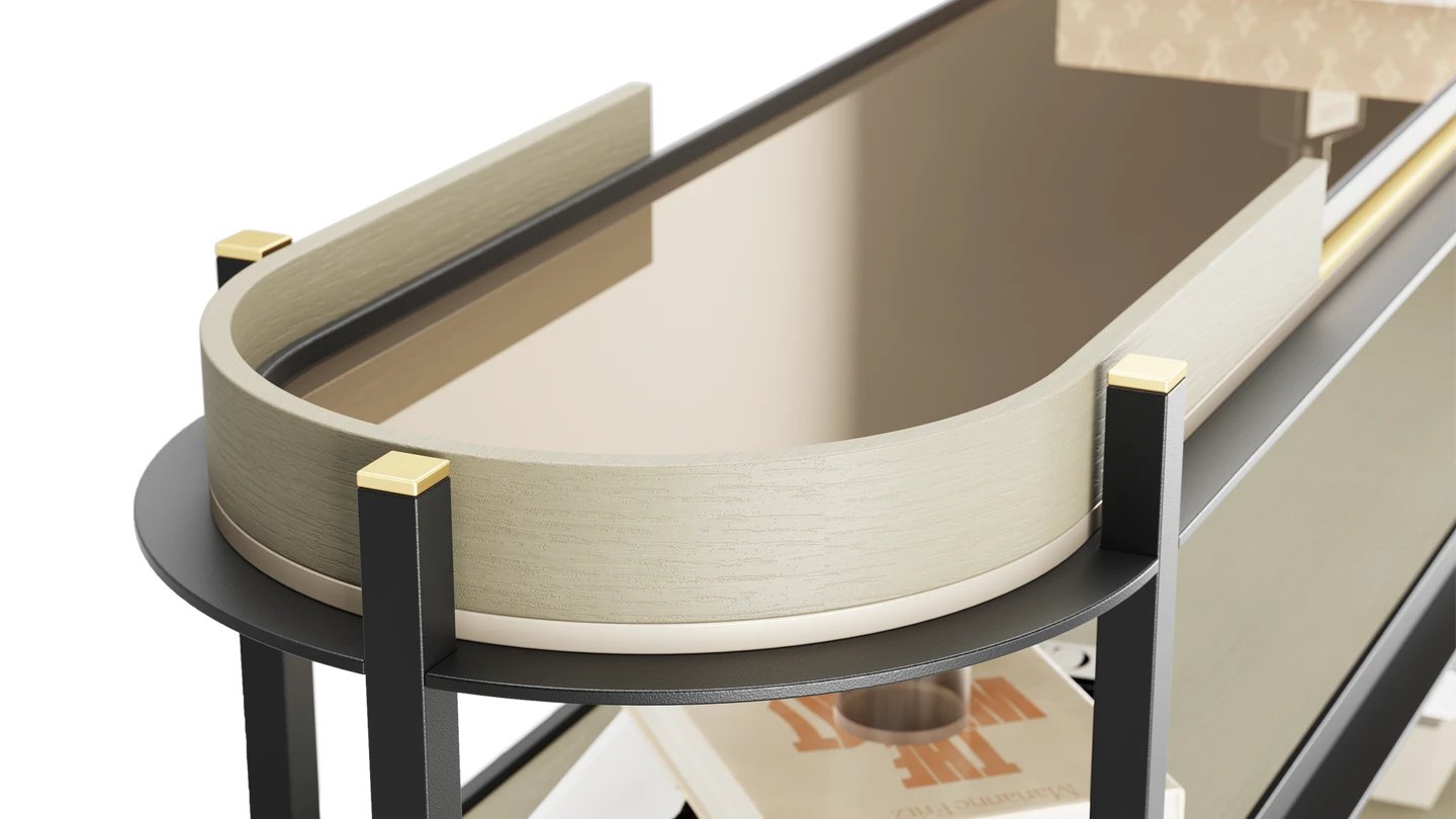 "Taking inspiration from the rocky desert town, our SEDONA Console commands space with its iron and wood base. Bronze mirror and brushed brass give it a subtle glow. "