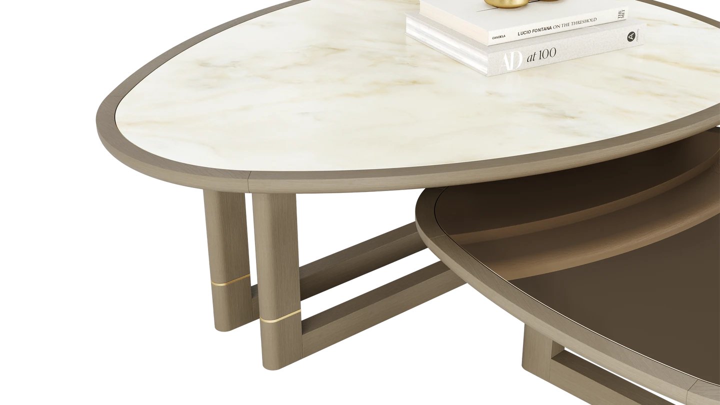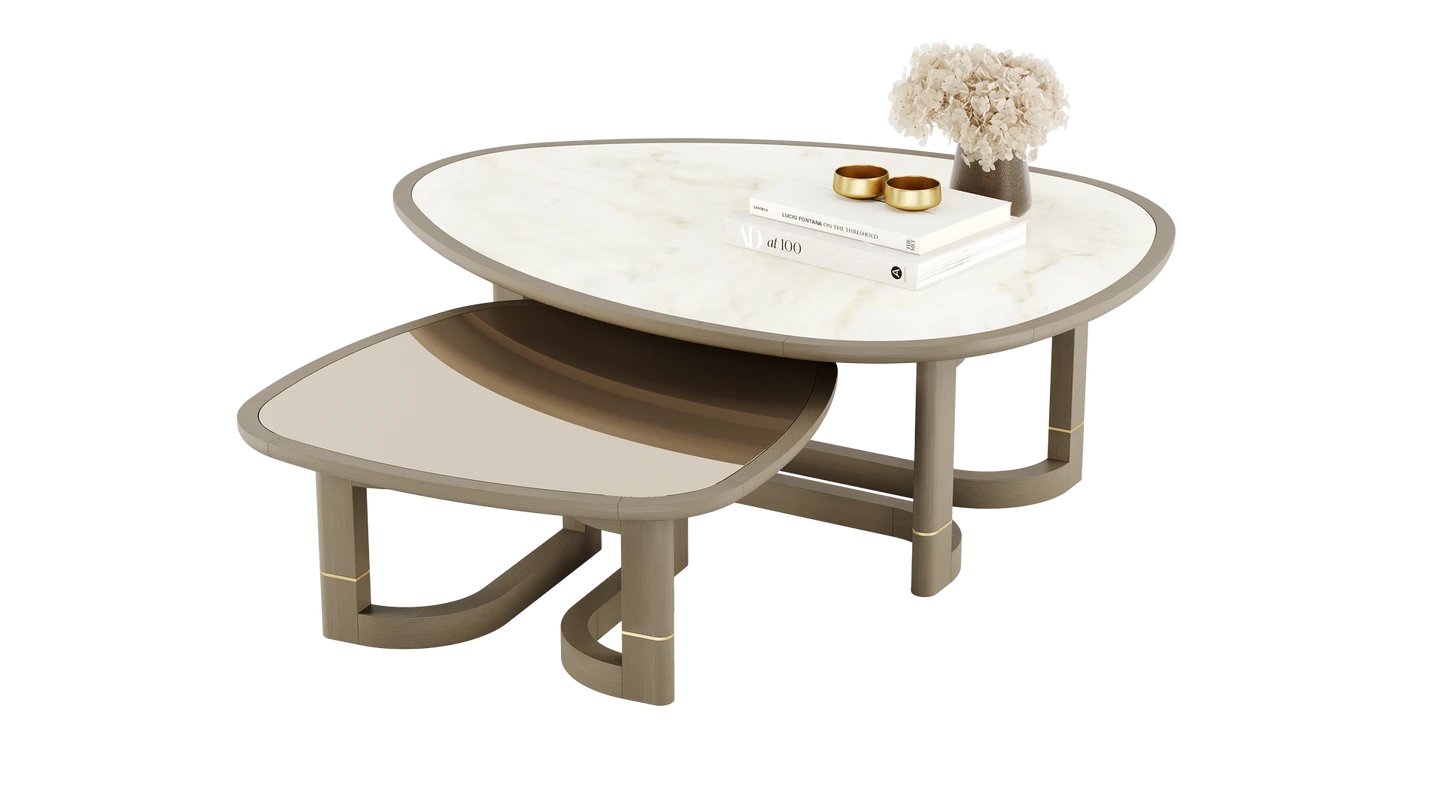 "A true icon, our UTAH Coffee Table brings an artistic flair to the lounge with its playful shape. It comes in two sizes, which can stand alone or be placed together as a nest. "