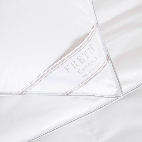 The Cortina Soft Down Pillow Filler has been designed to provide wellbeing and comfort during the night. Perfect to those who love sleeping on a very soft pillow, it is composed of extremely white soft Polish goose down and is encased in 100% cotton. A decorative piping and a double stitching embellish this Cortina pillow. Composition: Filling: 1140 gr/mq Inside: 85% down, 15% small feathers Outside: 100% cotton (380 TC) Made in Italy