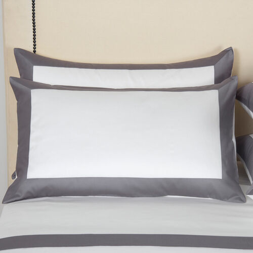 The Bold Pillowcase features soft, long-staple cotton sateen and a striking contrast border finished with a sleek simple stitch.