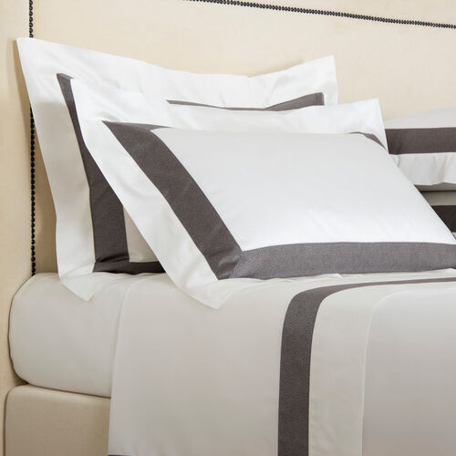 The Forever Border standard sham is an exquisite addition to any bedroom. Each sham is carefully made from cotton sateen with a yarn-dyed jacquard border applied to the upper side, providing a sophisticated appearance and a heavenly feel. Pair our shams with matching sheets, as well as one of our extraordinary duvet covers, for a beautiful, peaceful night's sleep. Pure extra long staple cotton. Made in Italy.