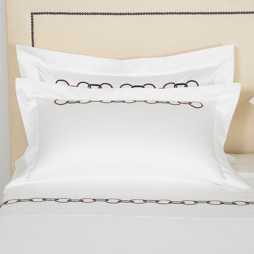 The Links Embroidery Sham is composed of smooth and lustrous long-staple cotton sateen and features a beautifully crafted chain embroidery on its front side.