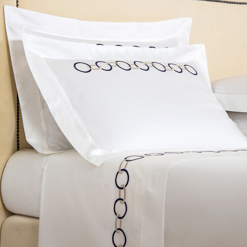The Links Embroidery Sham is composed of smooth and lustrous long-staple cotton sateen and features a beautifully crafted chain embroidery on its front side.