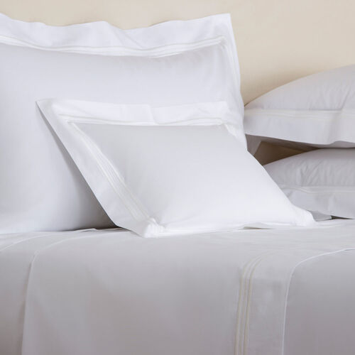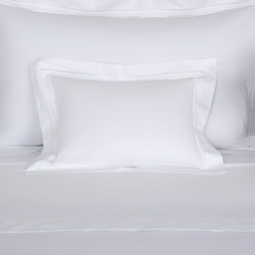 The Triplo Bourdon Boudoir Sham is crafted from smooth cotton poplin with a remarkable sheen and brightness and finished with a three-line embroidered detail. 100% cotton. Made in Italy.