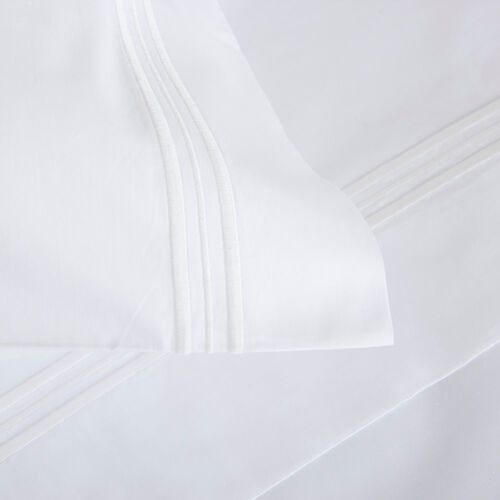 The Triplo Bourdon Pillowcase is crafted from smooth cotton poplin and has a remarkable sheen and brightness and finished with a three-line embroidery. 100% cotton. Made in Italy.