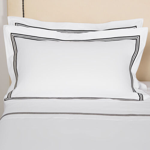 Soft and smooth with high shine, the Triplo Bourdon Sham is crafted from pure cotton poplin and embellished with a three-line embroidery