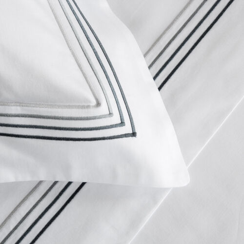 This sumptuously soft Cruise Duvet Cover brings elegance to any bedroom, presenting a simple layer of silky cotton sateen. With elegant 4 line embroidery detailing on plain fabric, this versatile duvet cover can be easily paired with any colour or pattern. 100% cotton. Made in Italy.