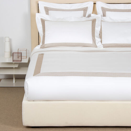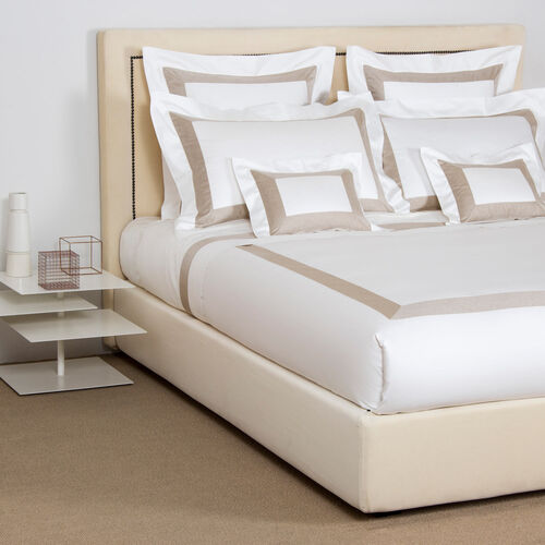 The warm, silk cotton sateen fabric of the Forever Border duvet cover makes your bed a beautiful oasis of peace and calm. The simple design and single hemstitch along the borders give this duvet cover an elegantly refined appearance that looks beautiful in a modern bedroom. Choose from a variety of duvet fillers from our selection, including down options and alternative fibres, to achieve your ideal night's sleep. Pure extra long staple cotton. Made in Italy.