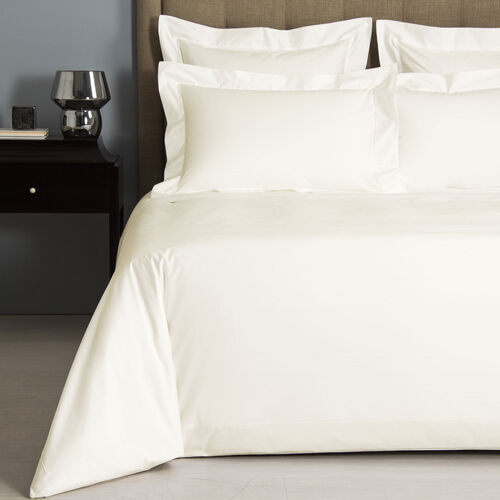 Soft and smooth with high shine, this cosy long-staple cotton sateen duvet cover is finished with an elegant shadow stitch. 100% cotton. Made in Italy.