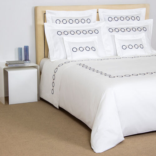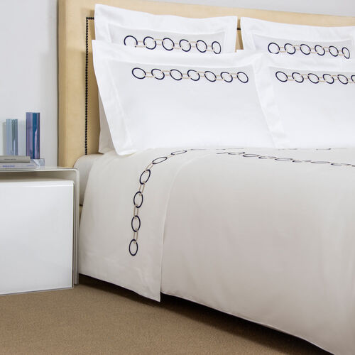 The Links Embroidery Duvet Cover features an elegant dual-tone chain design on soft and silky cotton sateen.