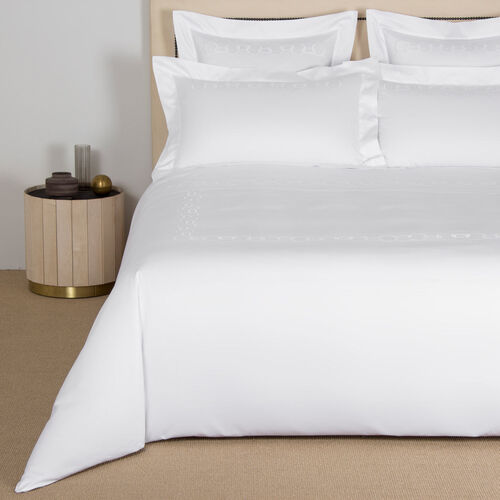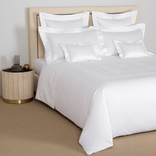 Soft and lustrous with a chic embroidery in dual-tone hues, the Links Embroidered Duvet Cover in pure long-staple cotton sateen effortlessly transforms any room into a sophisticated space. Complete the look with the coordinating sheet set and the elegantly textured Luxury Herringbone Bedcover. 100% cotton. Made in Italy.