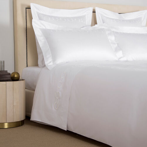 The Links Embroidery Duvet Cover features an elegant dual-tone chain design on soft and silky cotton sateen.