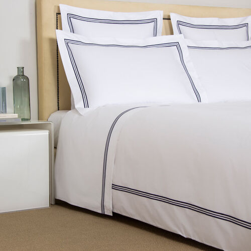 Soft and smooth with high shine, the Triplo Bourdon Duvet Cover is crafted from pure cotton poplin and embellished with a three-line embroidery.