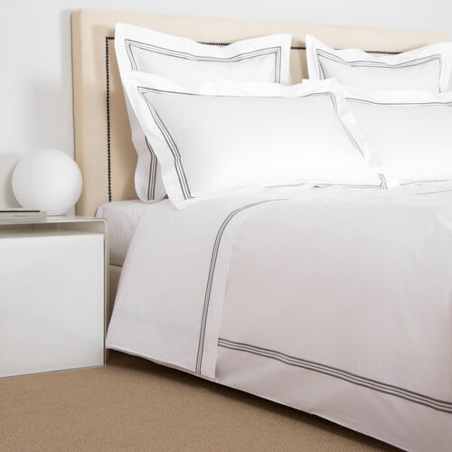 Soft and smooth with high shine, the Triplo Bourdon Duvet Cover is crafted from pure cotton poplin and embellished with a three-line embroidery.