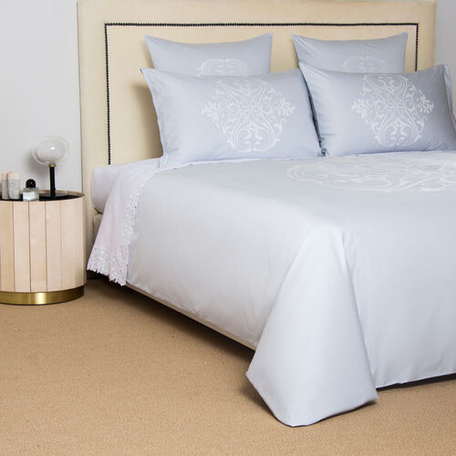 The Medallion Heart Duvet Cover features an intricately crafted jacquard design carefully woven on a uniquely oversized loom on soft and silky cotton sateen.