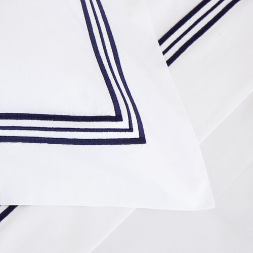 Soft and smooth with high shine, the Triplo Bourdon Sheet Set is crafted from pure cotton poplin - the perfect balance between percale and sateen - and embellished with a three-line embroidery.