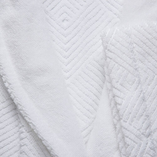 Produced from soft jacquard terry towel fabric, the Diamonds Bathrobe is complemented by wide patterned borders at the cuff and a hooded neck in a contrasting texture