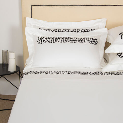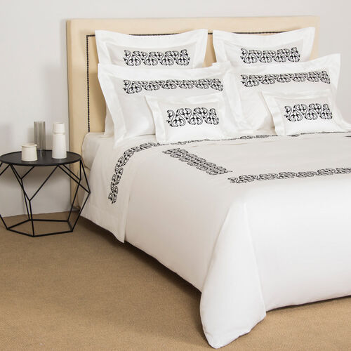 Crafted with pure cotton sateen and featuring an intricate arabesque embroidery, the Ornate Medallion Embroidered Sheet Set is delicate yet modern, the perfect blend of classic styling and contemporary