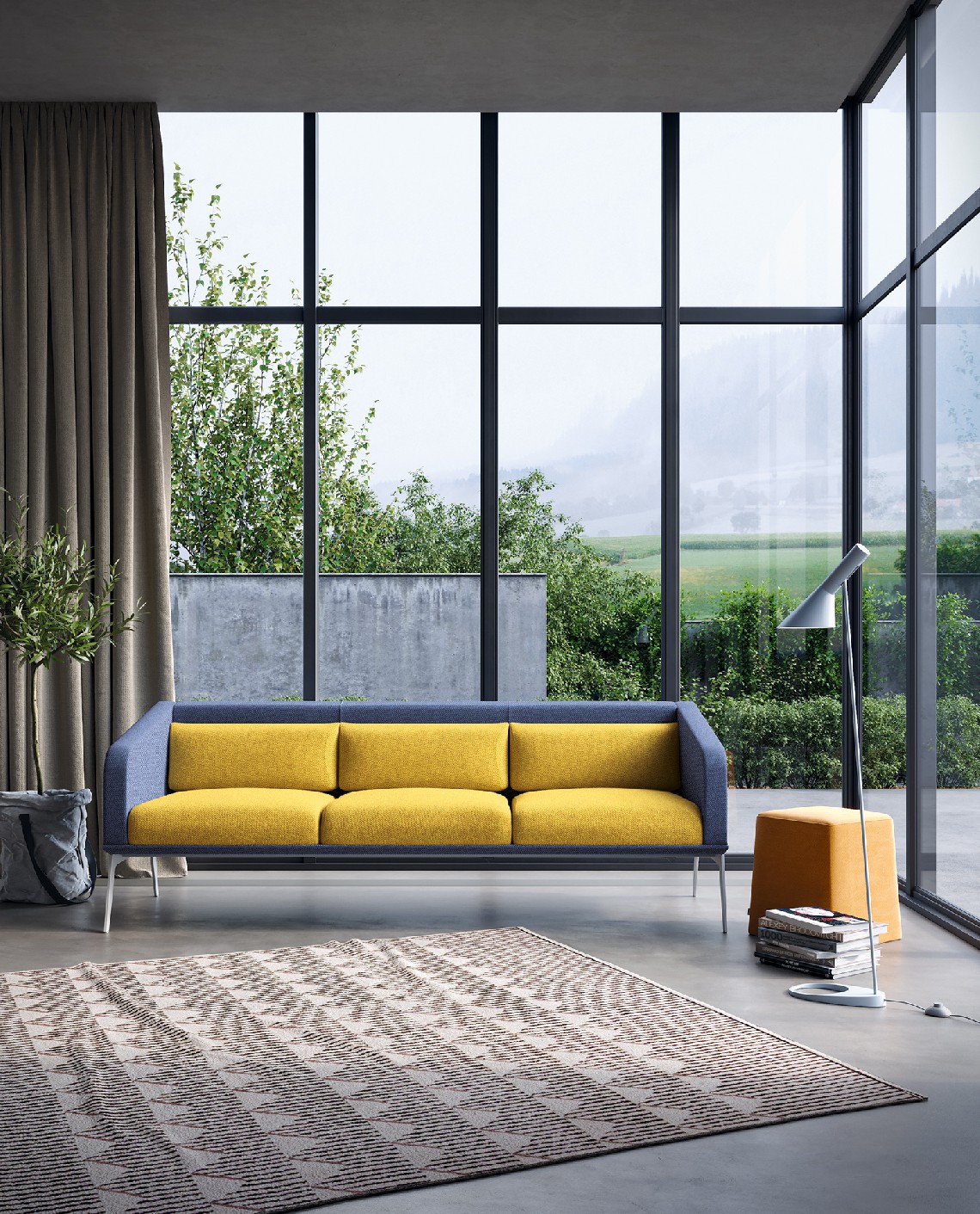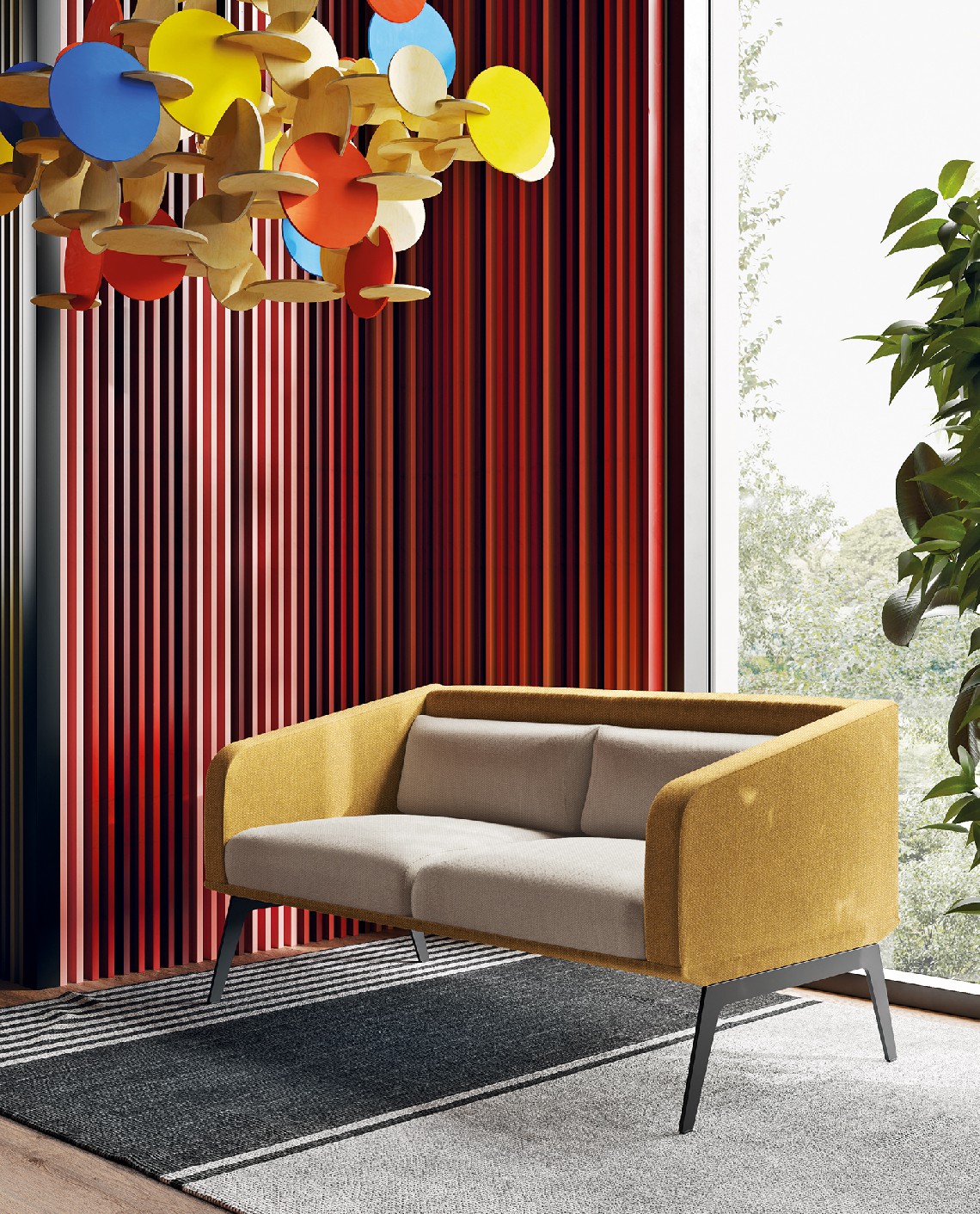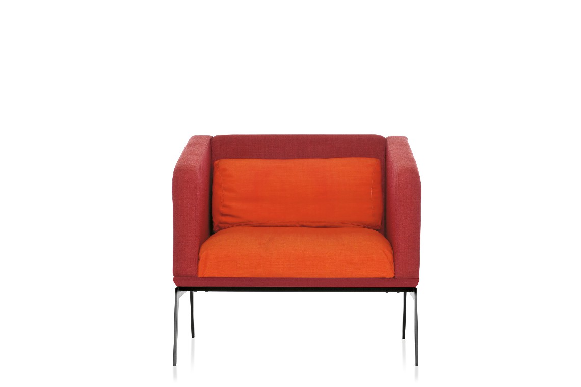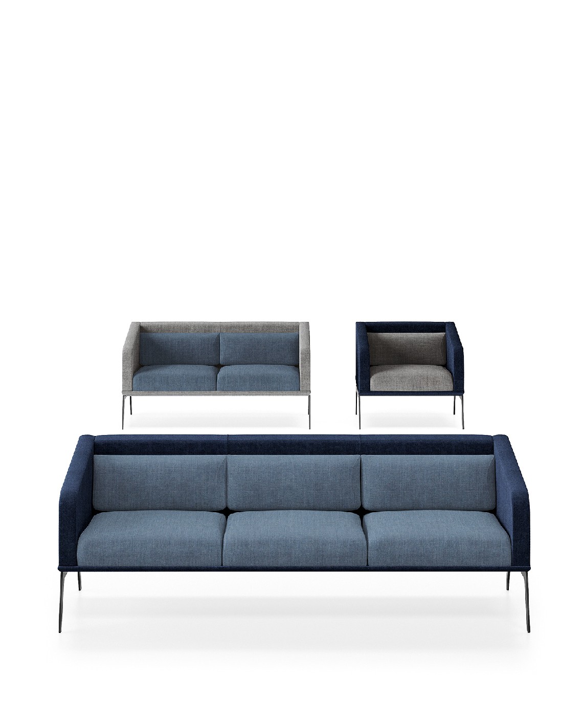 Metro 15 è una collezione di poltrone e divani business con una spiccata personalità, caratterizzata da una silhouette in acciaio rivestito in tessuto dal segno leggero ma robusto, che accoglie i volumi morbidi e confortevoli di sedili e cuscini, personalizzabili in una ricca gamma di tessuti di alta qualità manifatturiera.