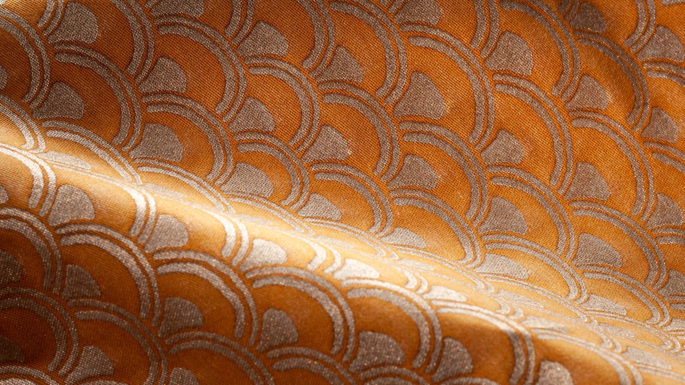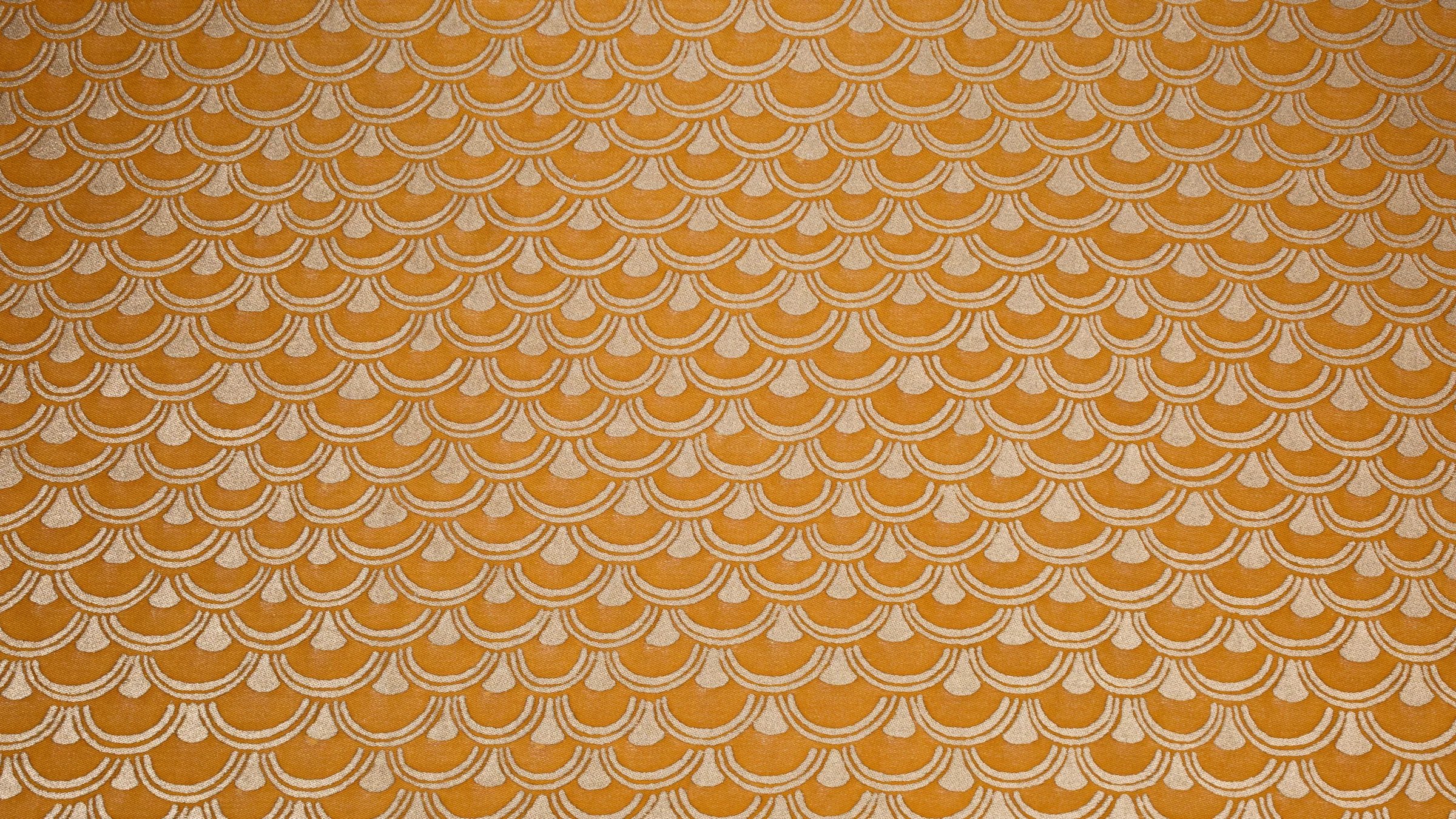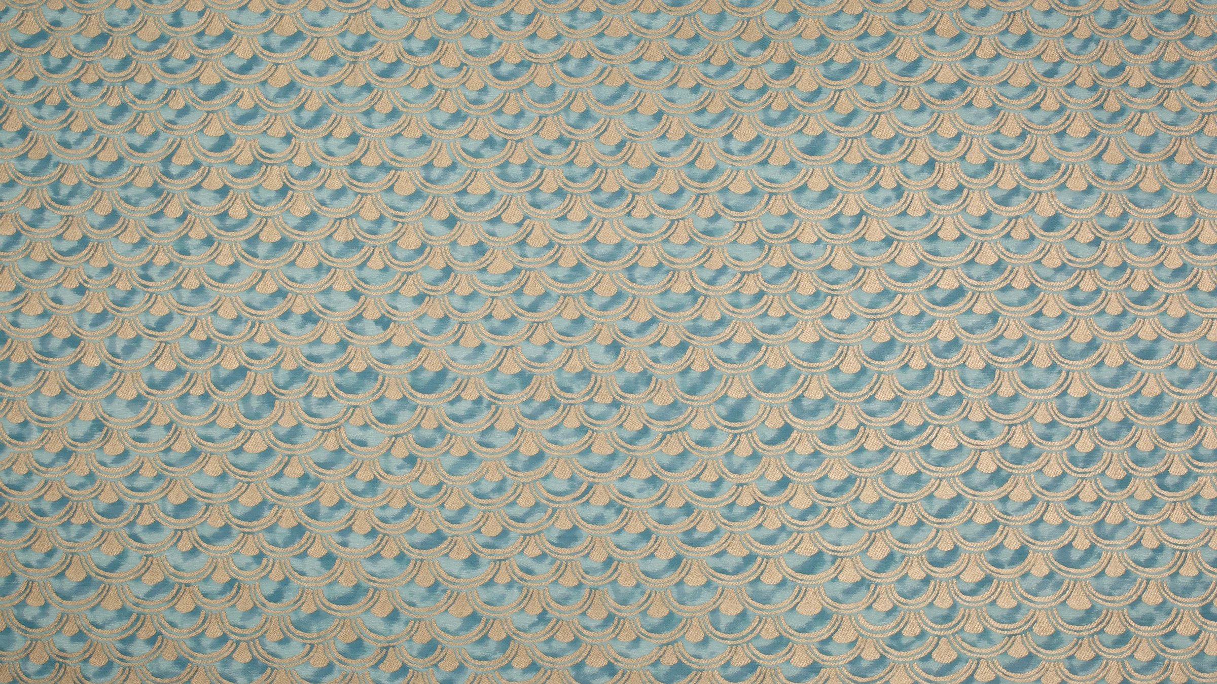 Simple in design, PAPIRO is an early 20th-century teardrop scallop motif derived from the early drawings of Mariano Fortuny. PAPIRO suggests a reedy marsh and the fan-shaped blossoms of the papyrus.