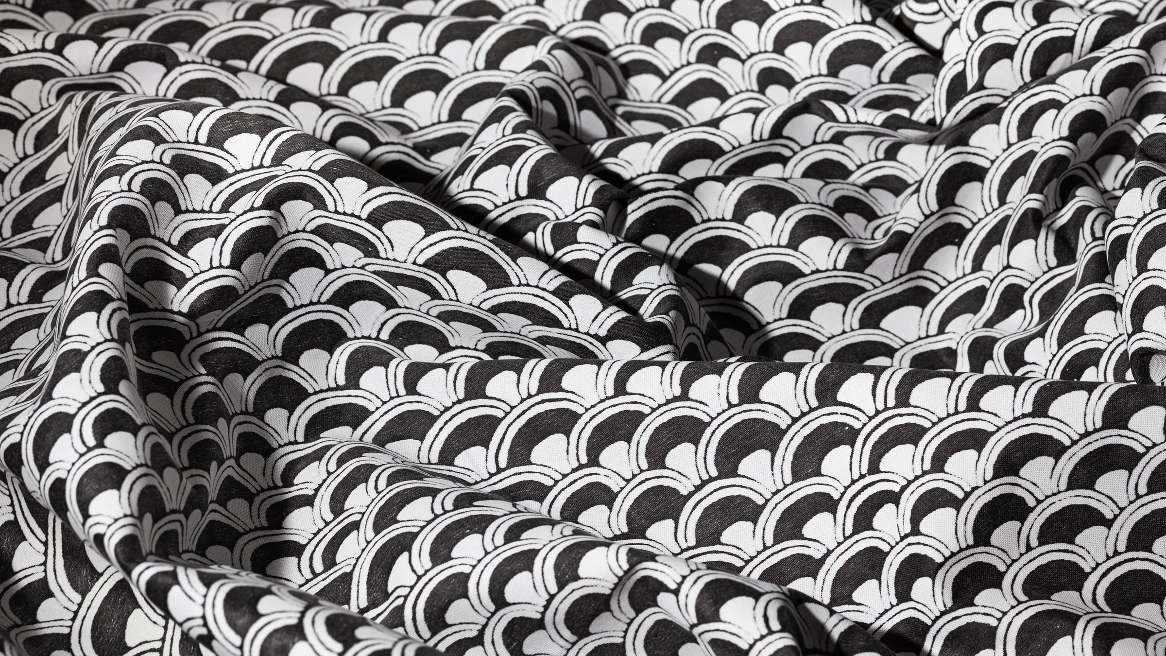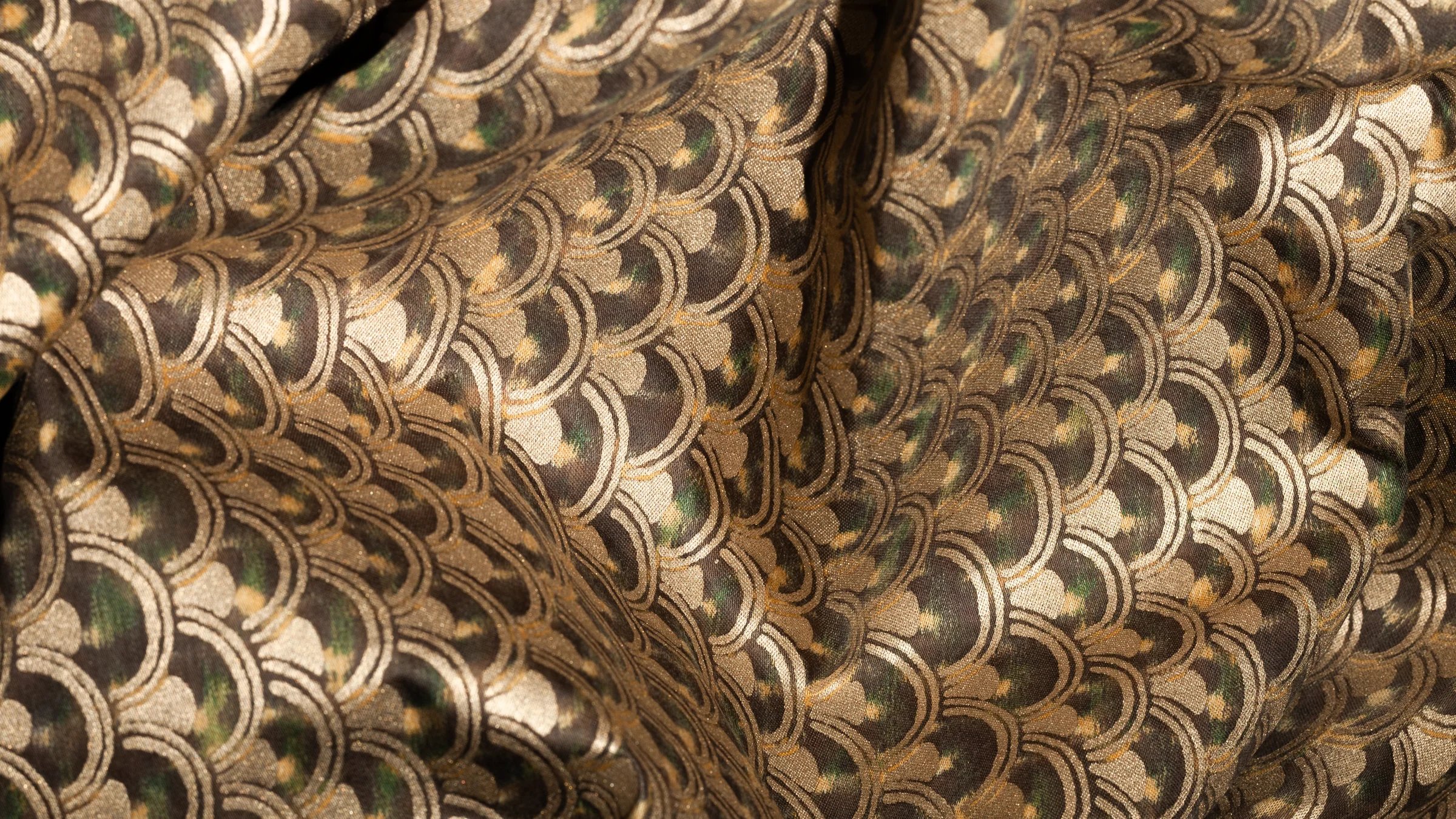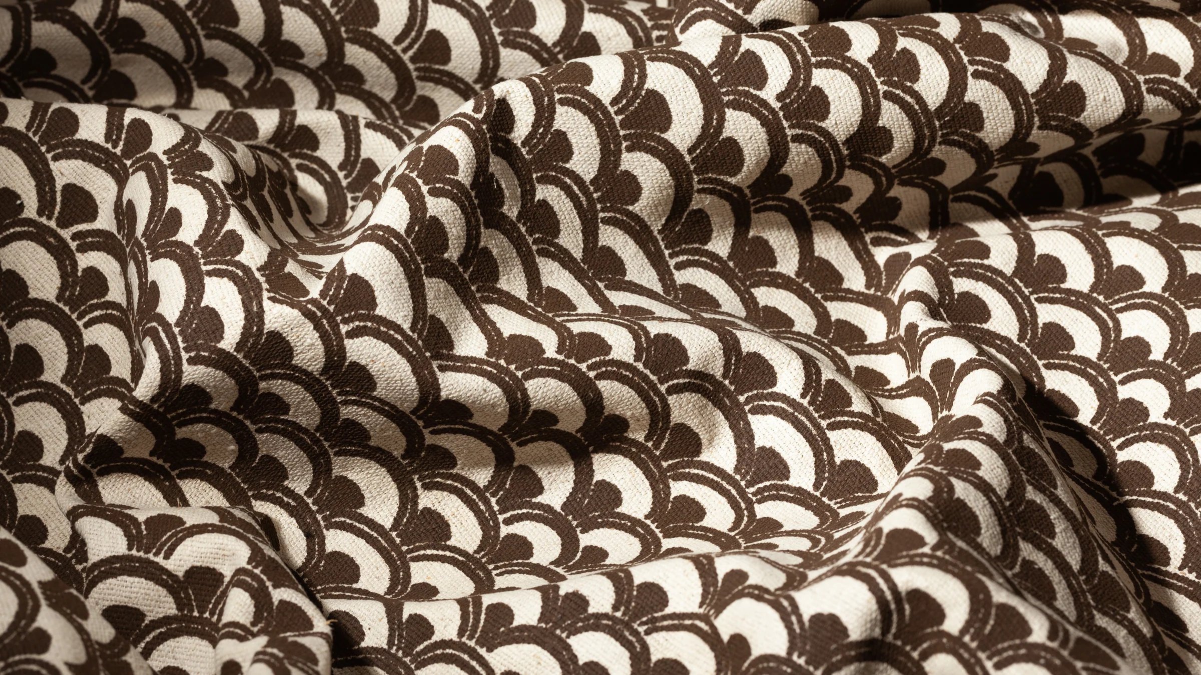 Simple in design, PAPIRO is an early 20th-century teardrop scallop motif derived from the early drawings of Mariano Fortuny. PAPIRO suggests a reedy marsh and the fan-shaped blossoms of the papyrus.