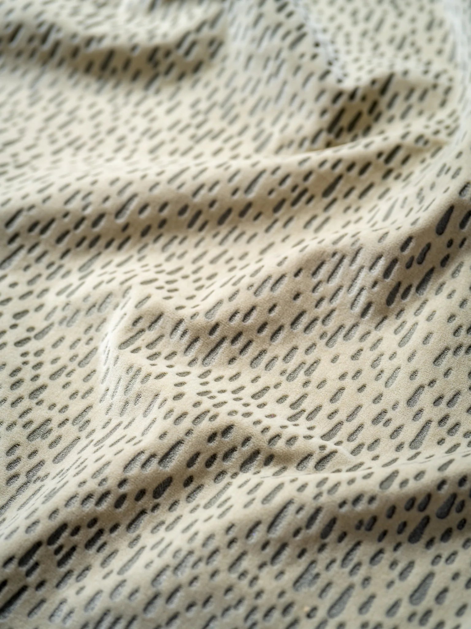 Meaning “rain” in Italian, this pattern takes inspiration from Fortuny’s Cilindri pattern, modifying the shape and size of the elements to add depth and movement. A testament to the charm of Venice, it serves as a reminder of the city’s state of constant beauty, no matter what the elements may be.