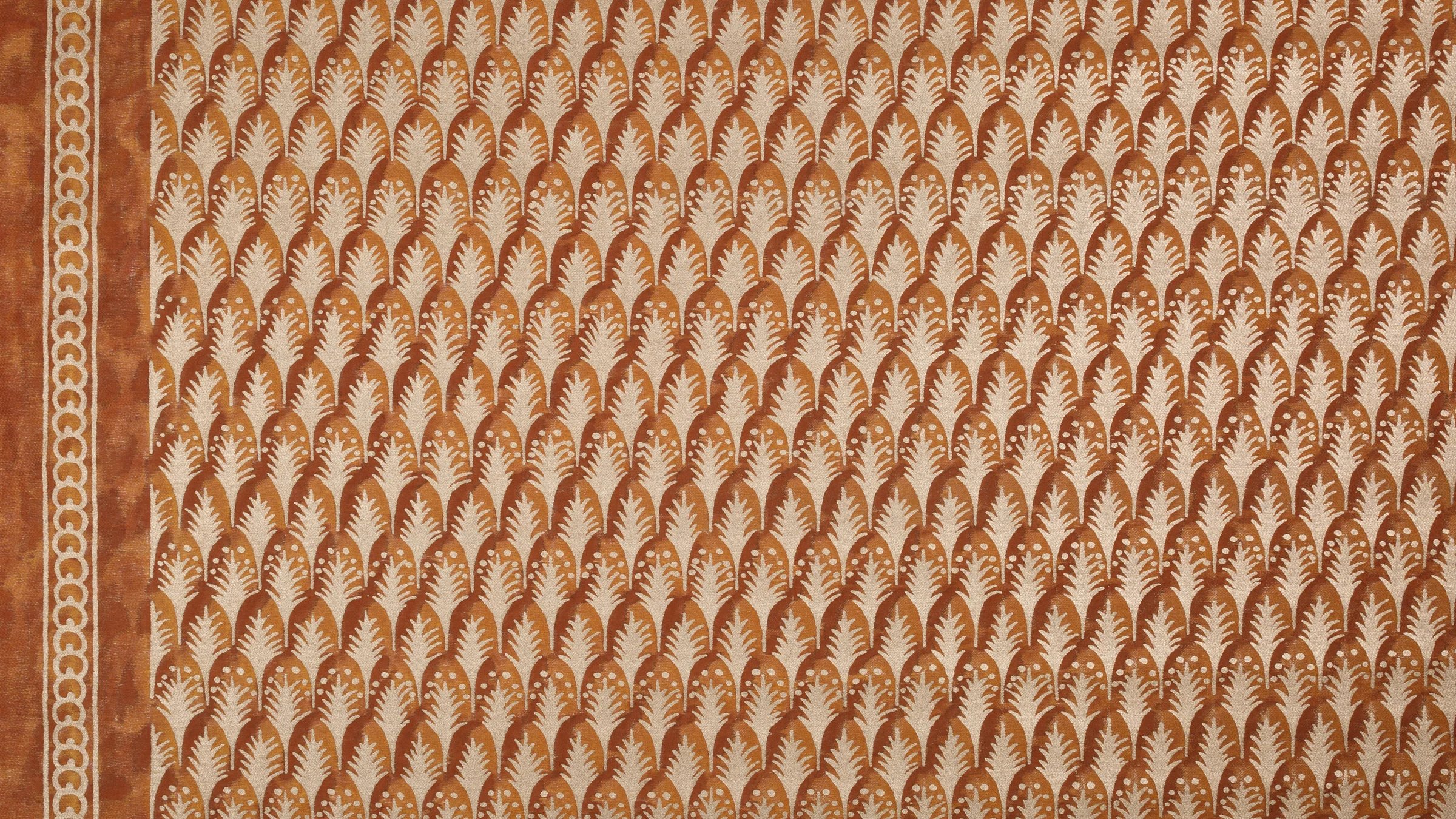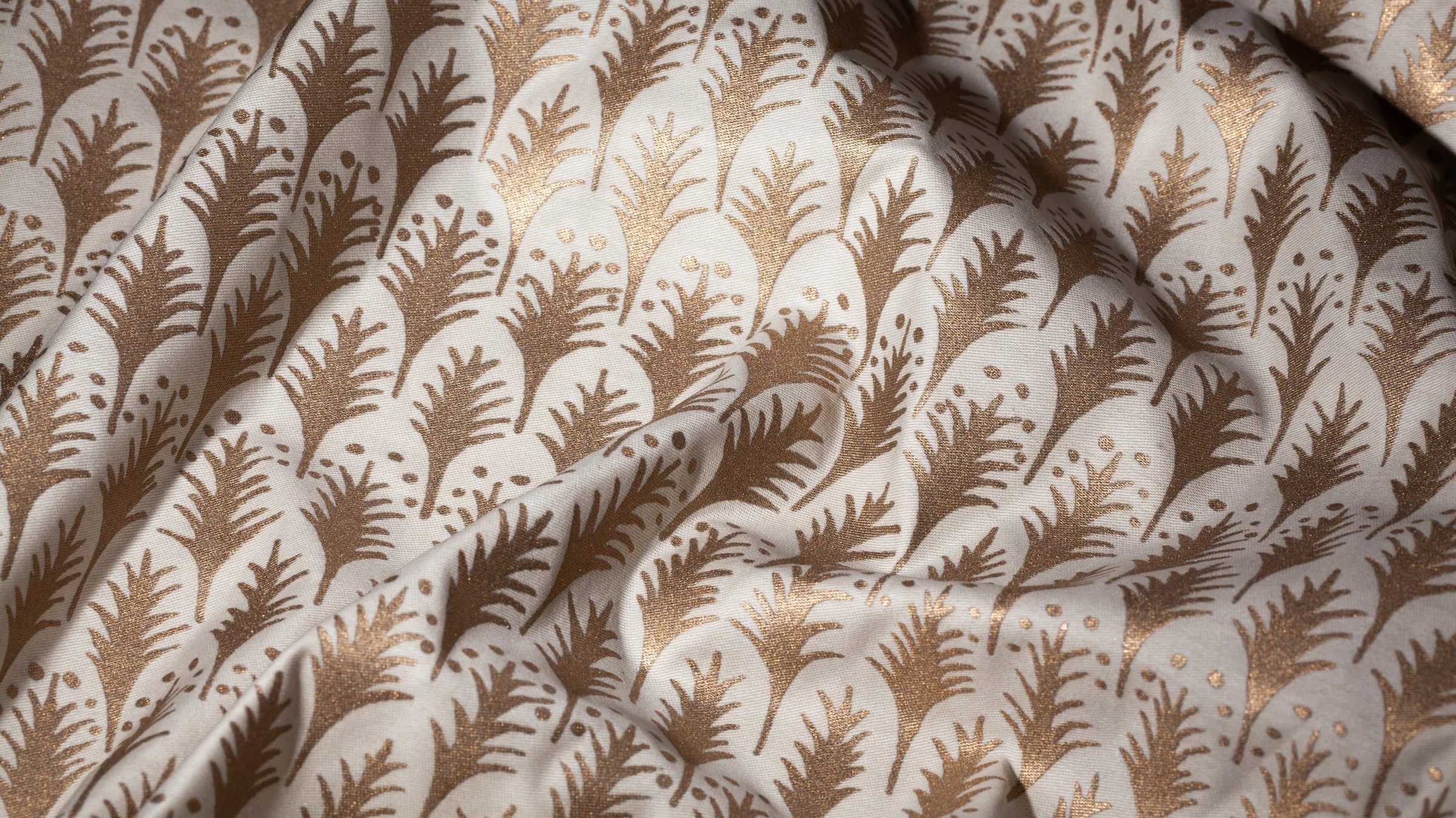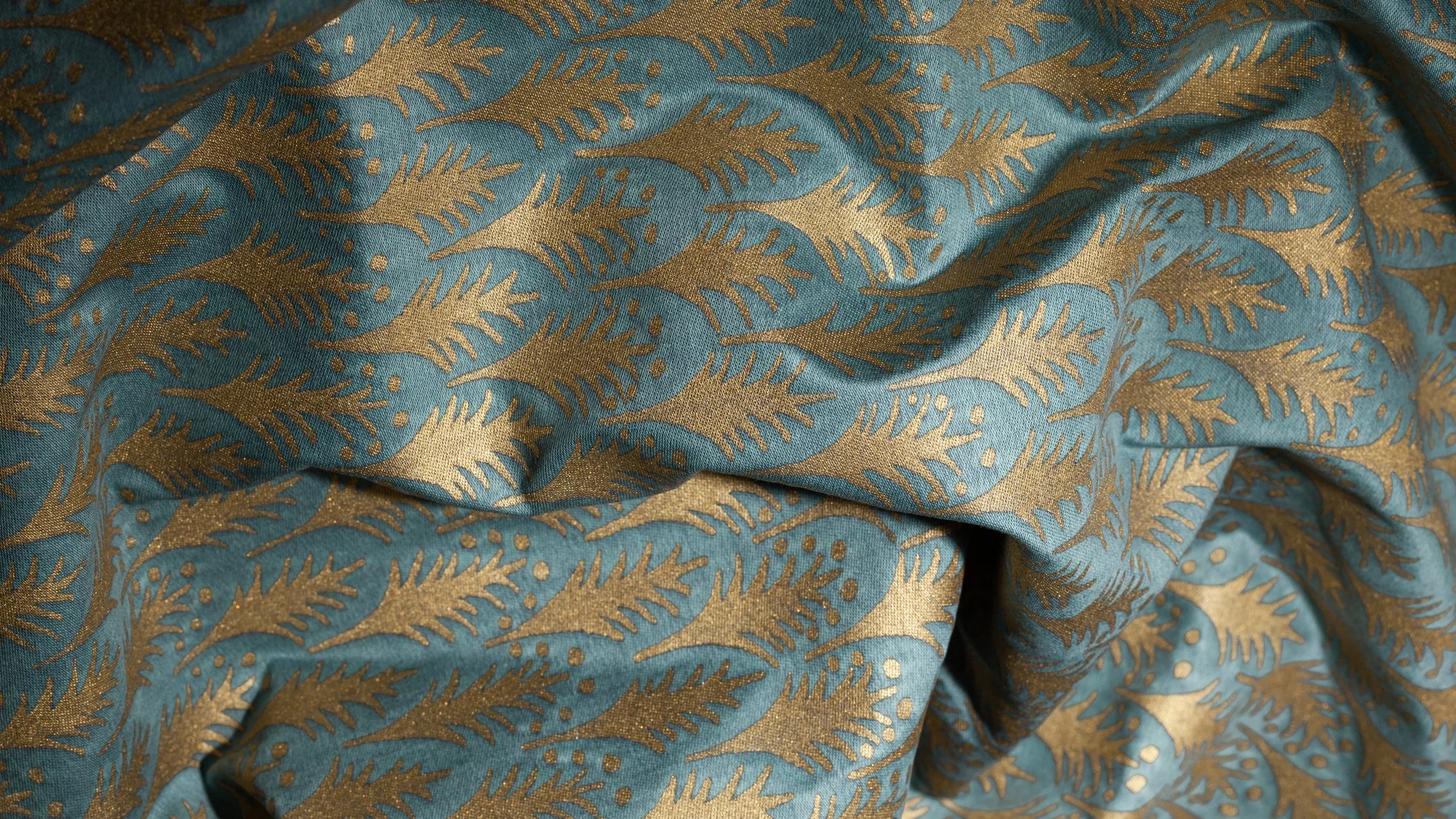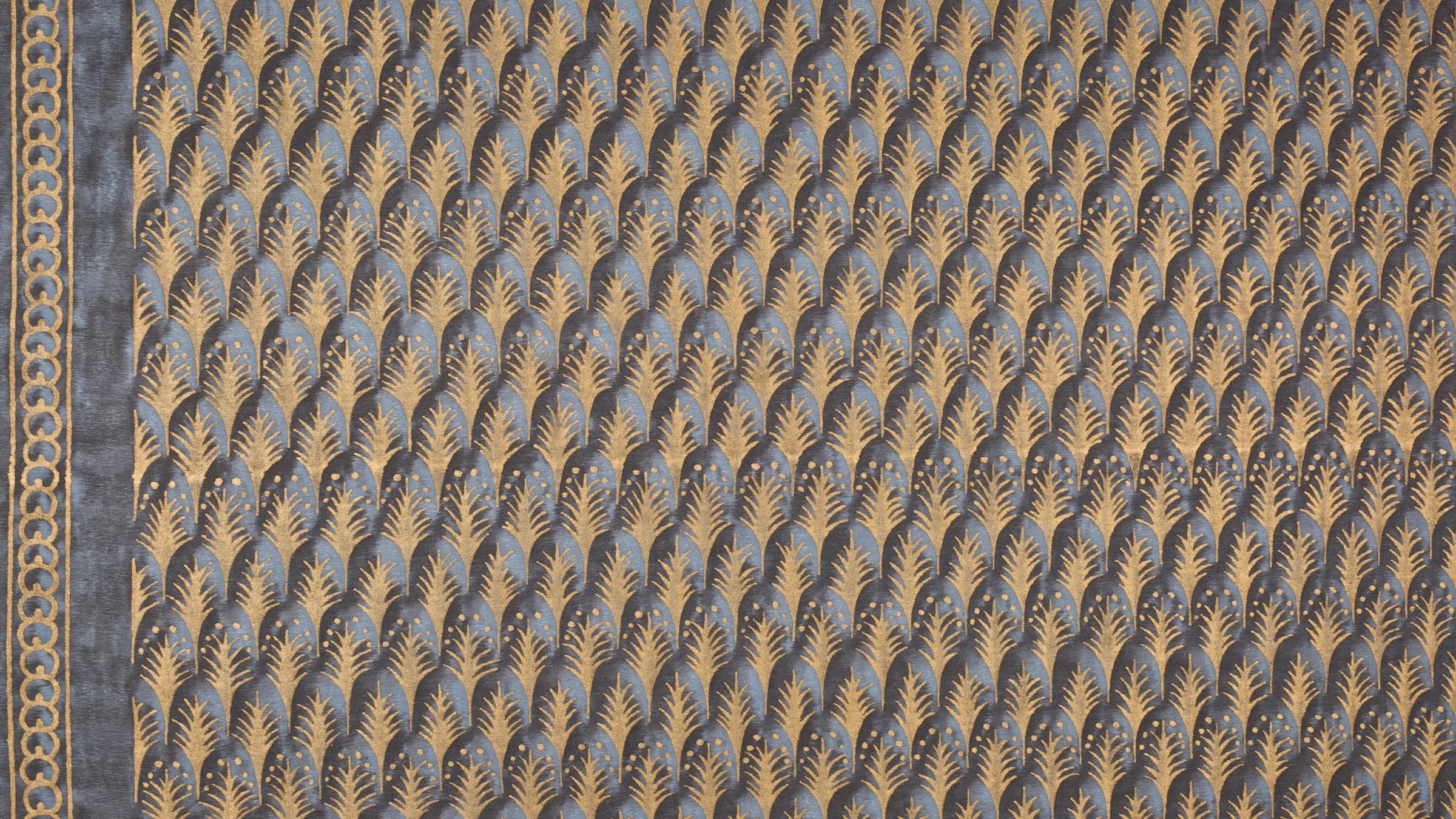 PIUMETTE, Italian for feathers, is a small-scale geometric motif of fanned-out feathers. The Persian-inspired design lauding freedom and transcendence through its connection with birds and flight is one of Mariano Fortuny’s earliest patterns.
