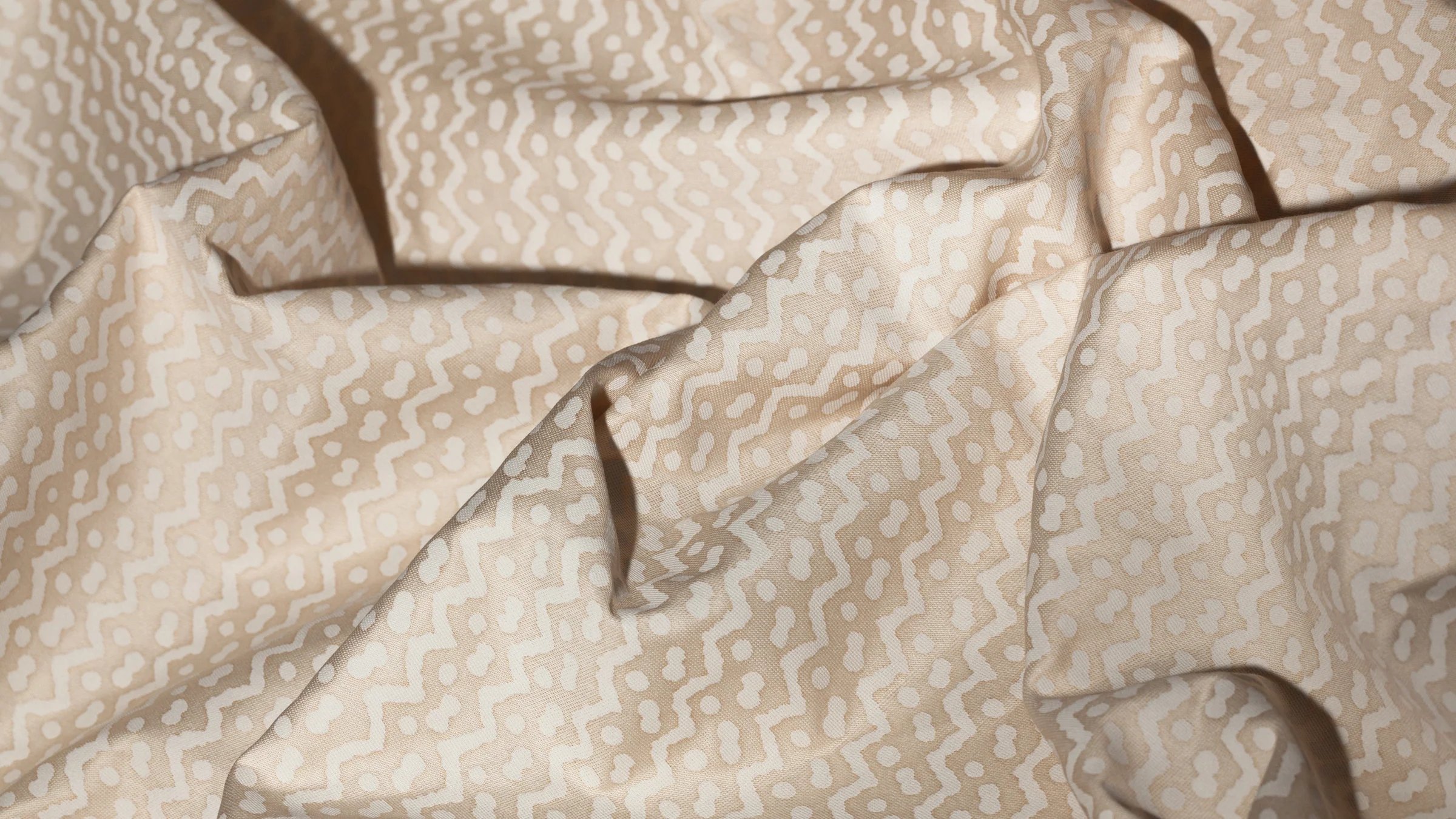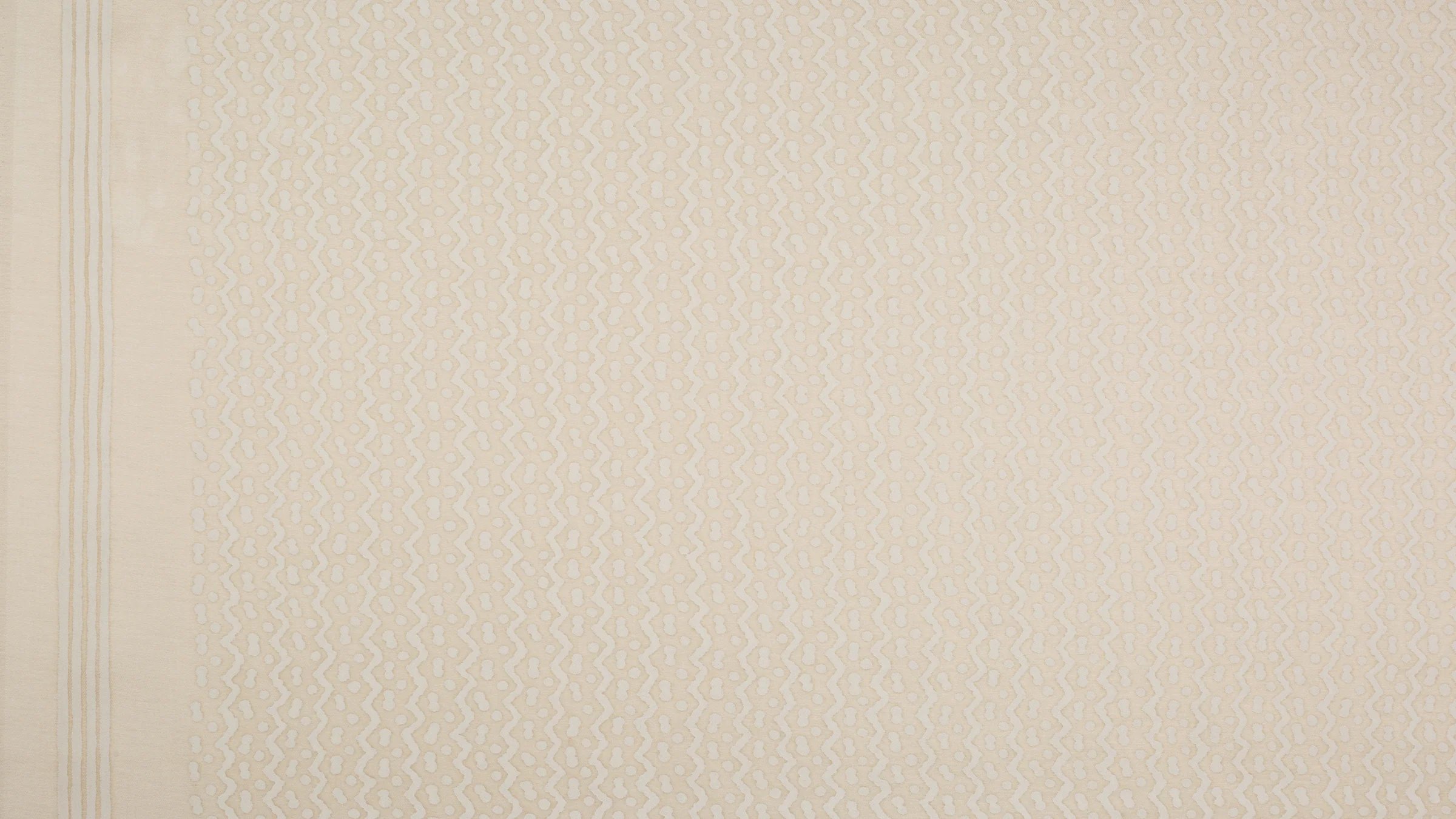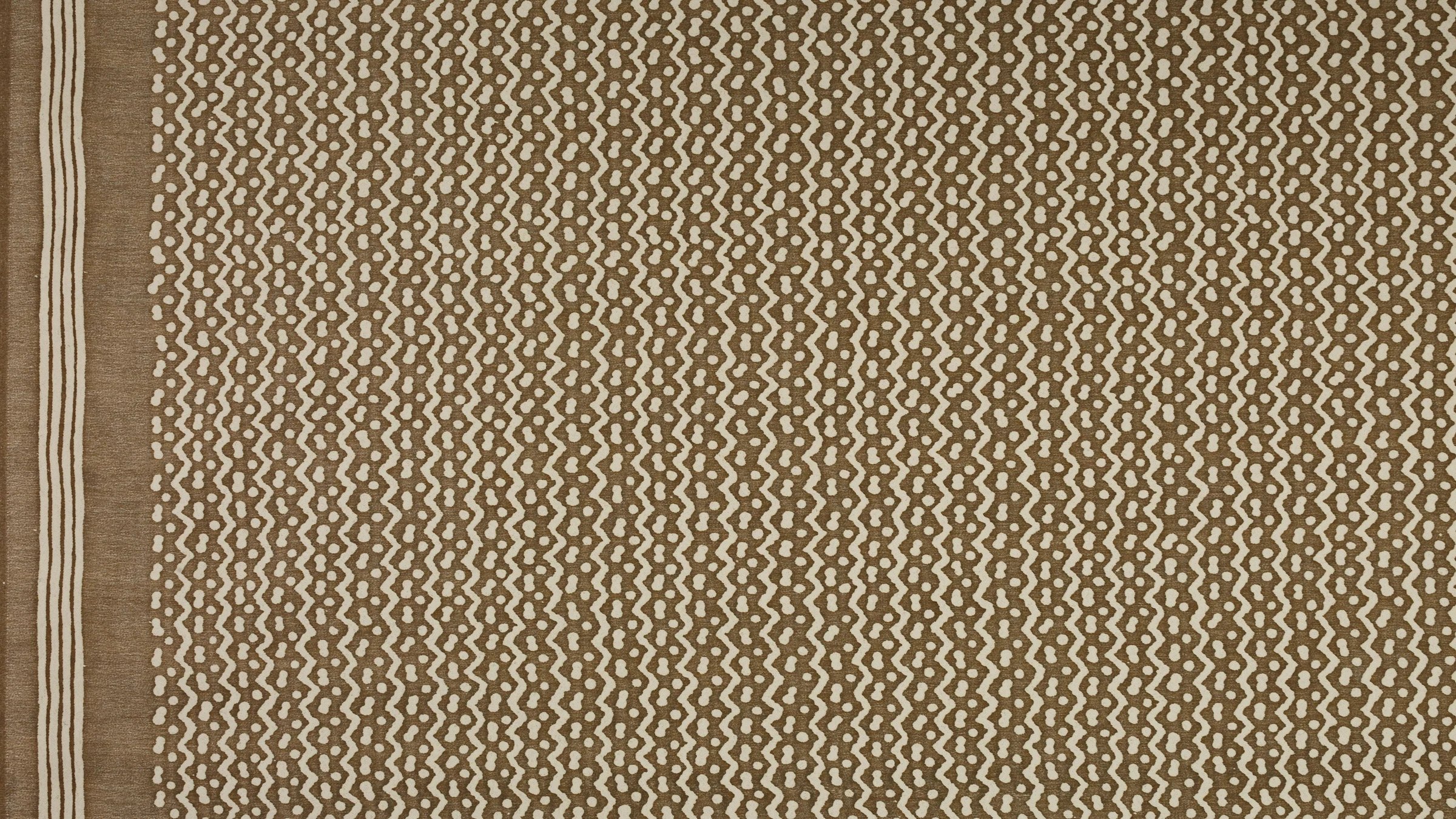 Originally made in the Pacific island nations, TAPA is a barkcloth traditionally decorated by rubbing, stenciling, or dyeing, among other techniques specific to the Tongan, Samoan, and Fijian people. The British Captain Cook first collected the cloths and brought them to the western world in the mid-18th century. In some cultures, the TAPA cloth was an important aspect of gift exchange. The simple mark-making on TAPA likely represents Leva berries (the series of dots) and the ocean’s currents (the zigzag pattern).