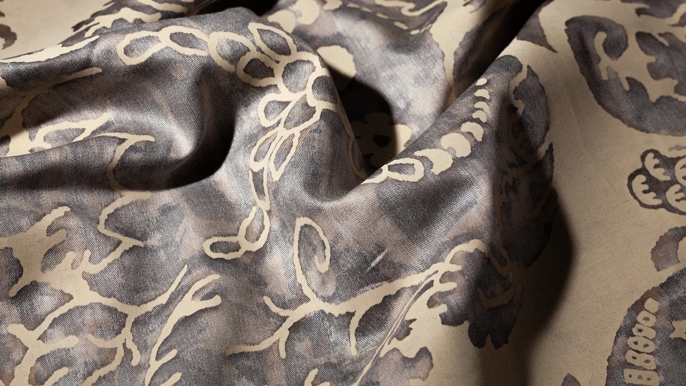 Listening to Antonio VIVALDI in Venice, a city seemingly frozen in time, is like being transported to the 18th-century, brimming with late-Baroque expressionism. Abundant botanical festoons and feathery plumes gather around ornate floral lozenges in our VIVALDI, creating a flamboyant and harmonic structure fitting of the maestro.
