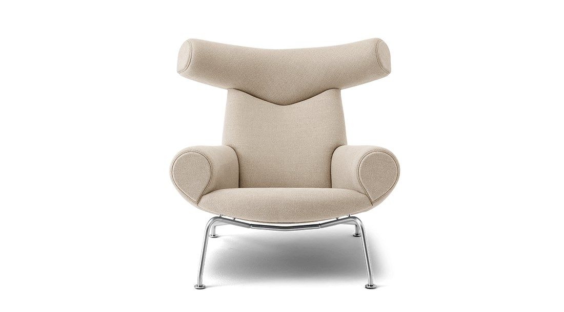 The Ox Chair by Hans J. Wegner is an iconic statement piece with an irrefutable presence. A bold, sculptural chair that challenged the understated aesthetics of Danish design at the time, with its distinctive headrest referencing ox horns and its voluminous body. It demonstrates his organic, artistic approach to furniture and desire to redefine traditional seating.