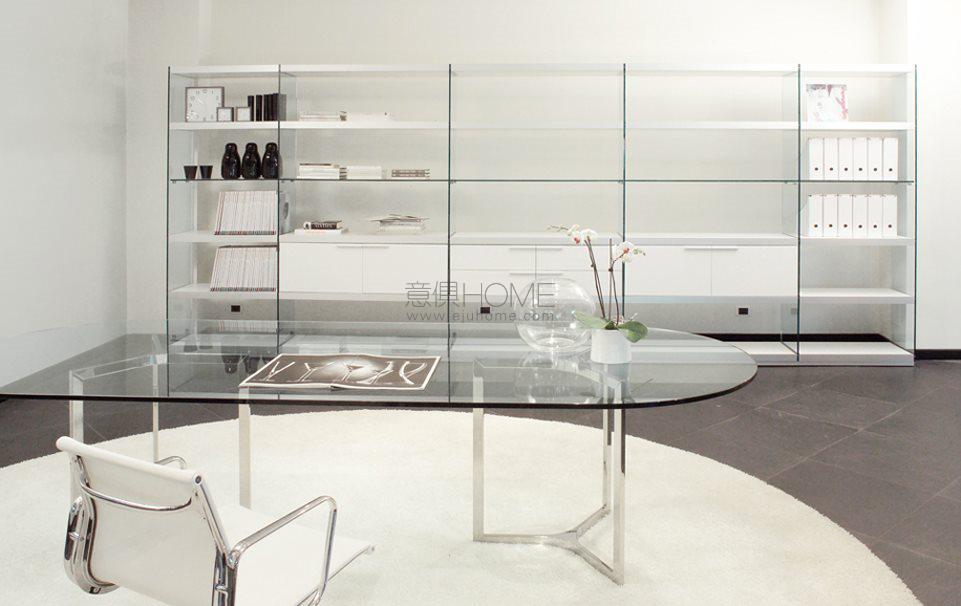 Raj Table with transparent glass top, available oval or rectangular shape. Bright stainless steel base with bright steel insert. Chromed aluminium central part. Raj Light Table with transparent glass top. Bright stainless steel base. Chromed aluminium central part.