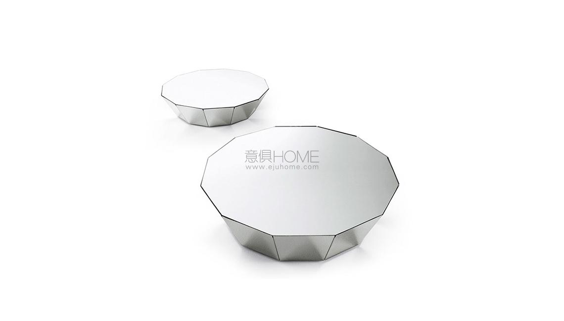 Coffee table with “supermirror” bright stainless steel structure and mirrored glass top. On castors.