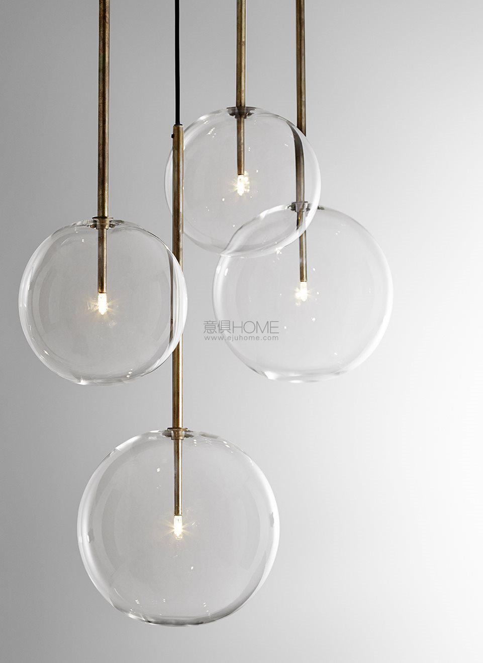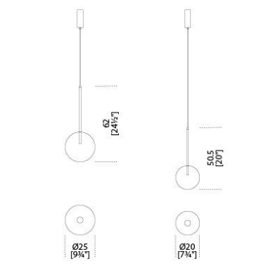 Hanging lamp with LED point light (G4 2700 Kelvin). Transparent blown glass sphere. Metal parts in hand burnished brass.The hand burnished brass finish looks naturally spotted and irregular. Due to this craft made processing, each product is unique and exclusive. Not dimmable light. Supplied with cable 4mt long.