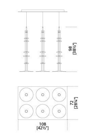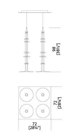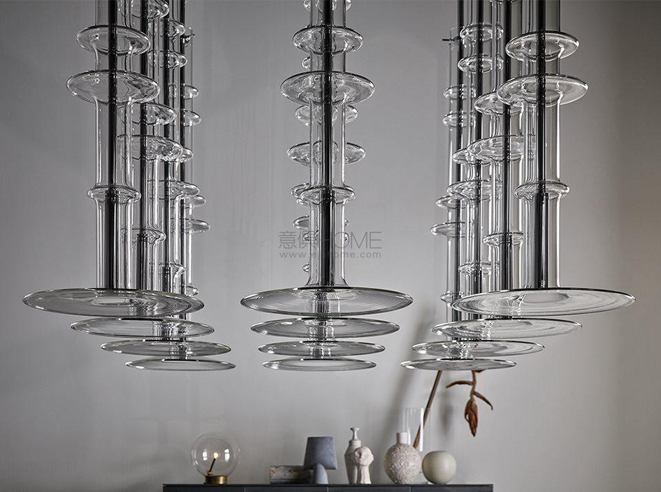 Hanging lamp with LED light (4 Watt). Handshaped glass cylinders. Bright chromed brass metal parts. Supplied with cable 4mt long.