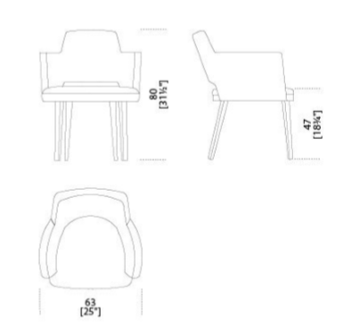 Upholstered armchair covered by fabric or leather. Black (mod. Layer) open pore lacquered ash legs. Seat and backrest covered by fabric or leather as per sample.