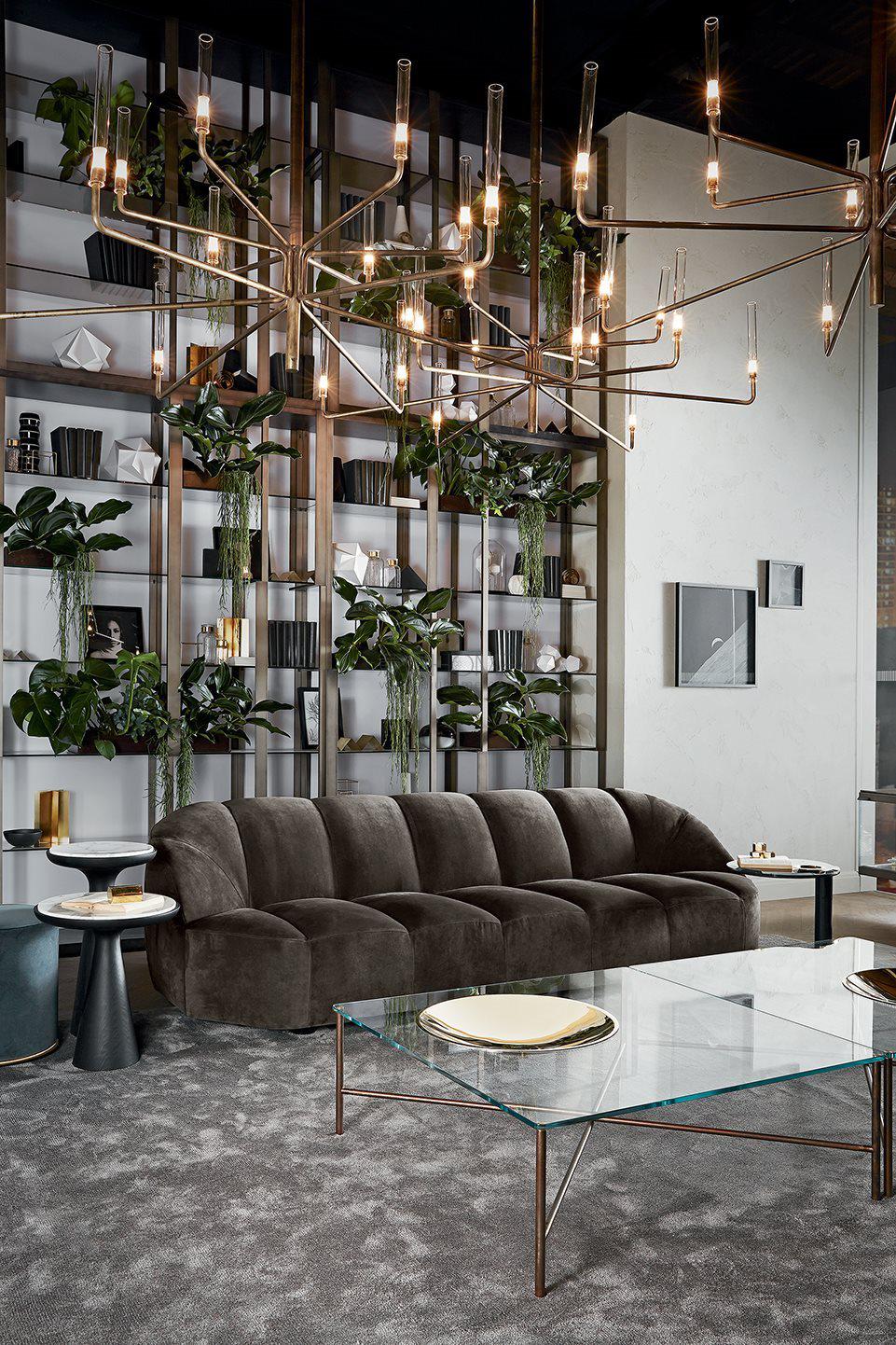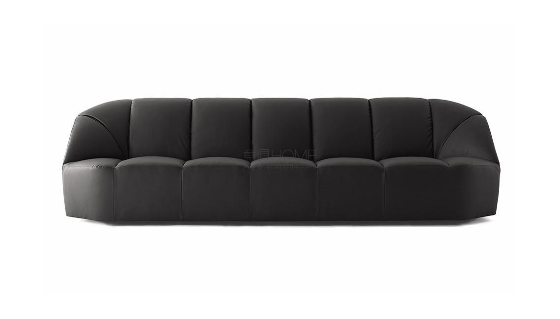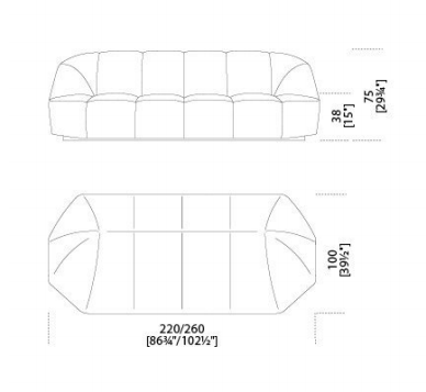 Sofa in non-deformable foam polyurethane in different density and polyester fibre with wooden inside structure. Black lacquered wooden feet. Available covered by velvet, leather or suede asper samples. Decorative polyester fibre cushions, on request.