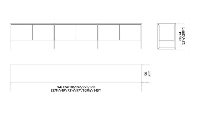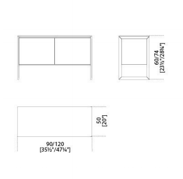 Wooden sideboard covered by painted glass as per samples in the bright or satin version. Bright or satin stainless steel structure.