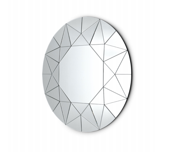 Hand polished mirror with octagonal central part and frame composed of 40 inclined mirrors on different levels.