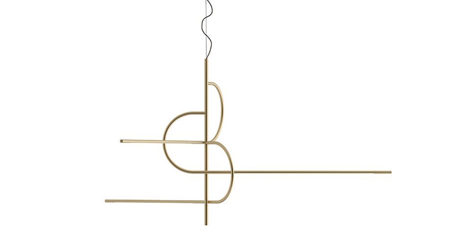 Parti metalliche in ottone satinato. In dotazione cavo di 4mt per regolare l'altezza.