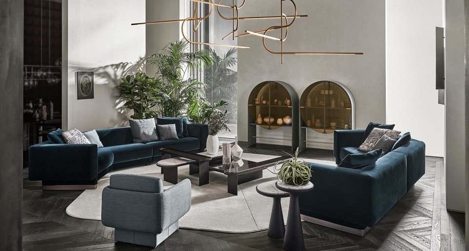 Vetrina con struttura in legno laccato color “elephant grey”. Anta in cristallo 6mm temperato pigmentato color ambra. Schienale e ripiani in cristallo “Grigio Italia” 6mm temperato. Dettagli in ottone satinato.