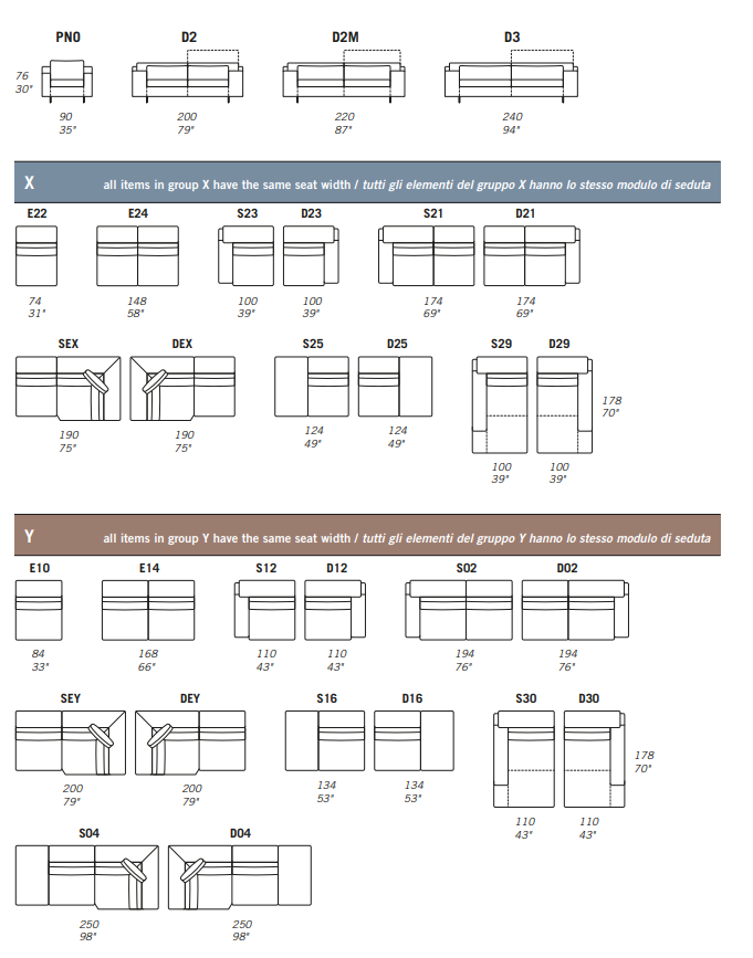Back cushions feature a headrest mechanism which can be lifted up individually. (E01 / PNO features an unmovable headrest).
