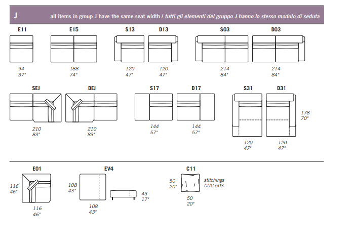 All corner elements include one C11 (CUC 503) throw pillow free of charge.