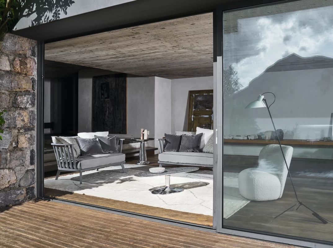 Giochi di luce e di riflessi caratterizzano la famiglia di tavolini Next 141/142/144. Realizzati internamente in fusione di alluminio lucidato, sono disponibili in diverse dimensioni ed altezze e sono caratterizzati da una singola base centrale che sembra sorreggere un vassoio con i bordi leggermente rialzati. La lucidità della superfice permette alla luce ci creare effetti ogni volta diversi.