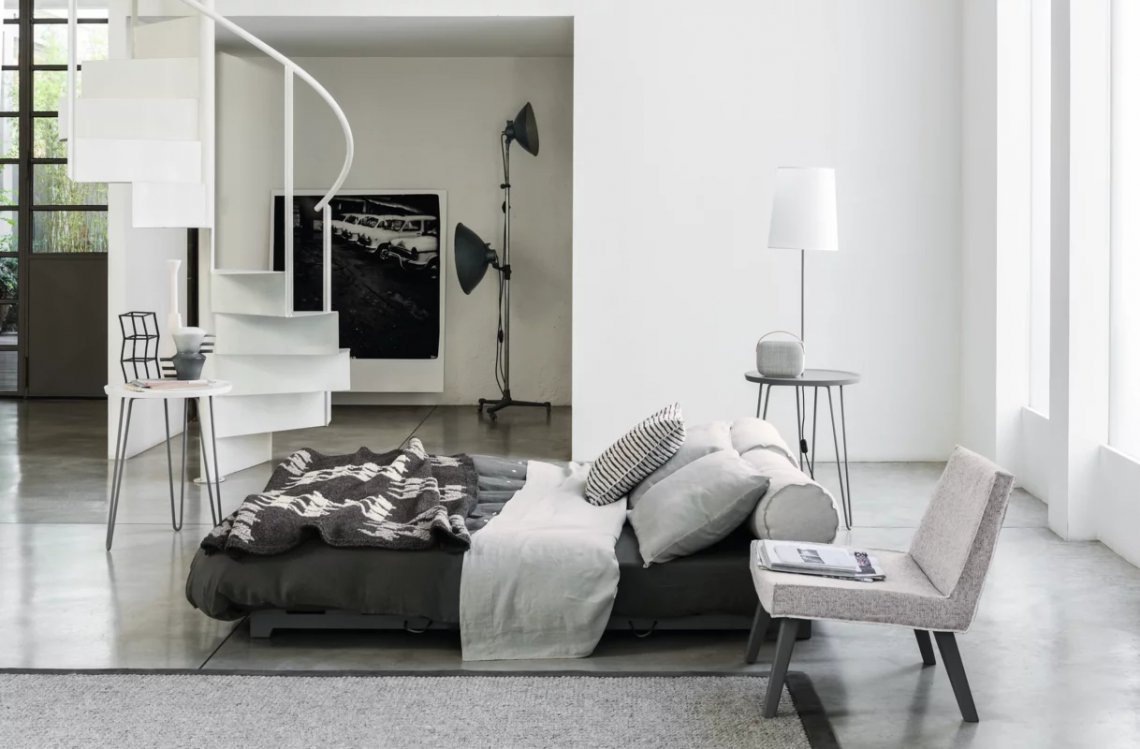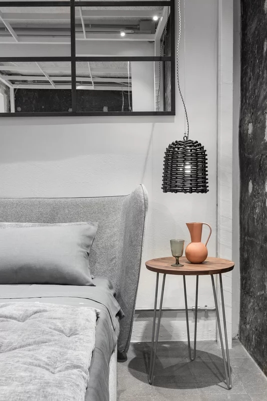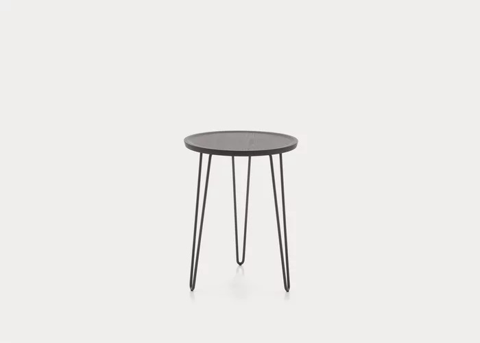 Il tavolino-comodino LC 46 è espressione di grande leggerezza visiva, grazie alle gambe in tondino d’acciaio verniciato bianco o grigio finitura opaca che sembrano disegnare delle onde, unite al noce Canaletto naturale, nero, bianco, grigio, oceano o tortora del top.