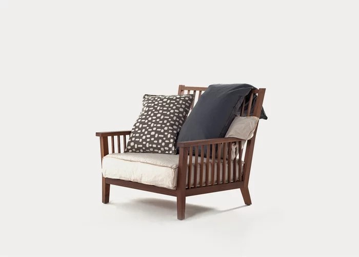 Poltrona lounge con struttura in legno, Gray 01 è caratterizzata da linee squadrate ed essenziali. Il contrasto tra la solidità degli ampi listelli e la morbidezza dei cuscini volanti, conferisce al prodotto un piacevole equilibrio visivo. La struttura è realizzata in noce Canaletto verniciato naturale, rovere sbiancato o rovere laccato bianco, grigio, nero, oceano o tortora.