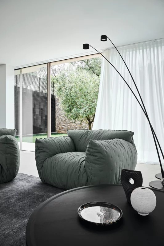 Famiglia di poltrone dalle forme soffici e attraenti, Nuvola ha un’estetica che invita a tuffarcisi dentro: i braccioli alti accolgono una seduta profonda come un abbraccio creando un vero e proprio effetto cocoon. Disponibili in due dimensioni, hanno l’imbottitura in poliuretano espanso a quote differenziate rivestita con trapuntino imbottito con piuma d’oca e fiocco di fibra di poliestere. Il rivestimento è sfoderabile con cuciture a vista che disegnano il profilo del prodotto, ed è realizzabile con tutti i rivestimenti a catalogo all’insegna della massima versatilità.