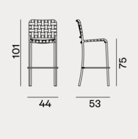 Sgabello caratterizzato da struttura essenziale e minimal, Inout 828si sviluppa attorno ad una leggera struttura in tubolare di alluminio verniciato goffrato nei colori Pearl, Oxido, Agate o Slate, materiale ecologico ed unico per qualità tecniche. A questo si aggiunge un particolare intreccio in cinghia elastica grigia, nera, blu o tabacco, un prodotto innovativo a base di gomma sintetica e propilene.