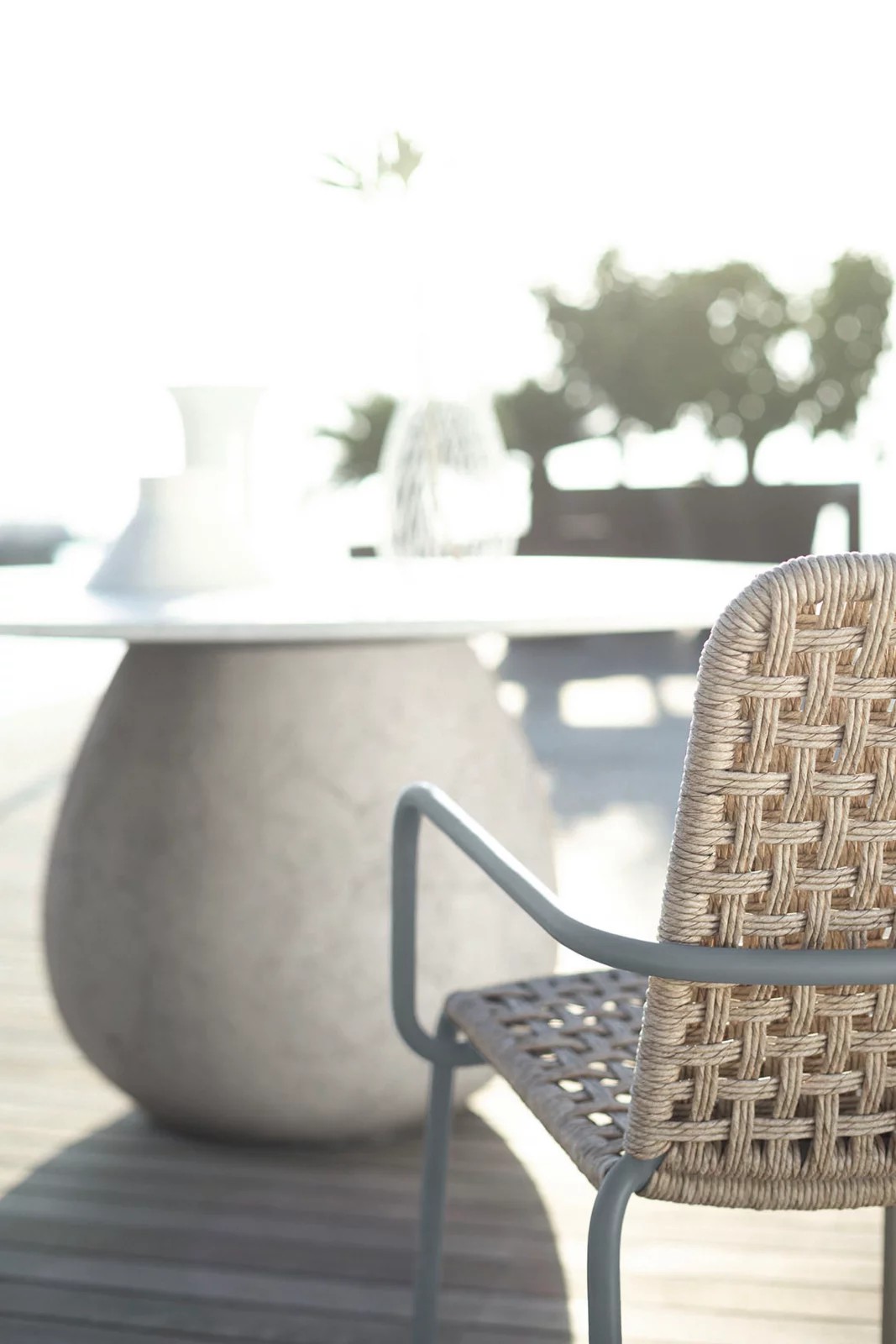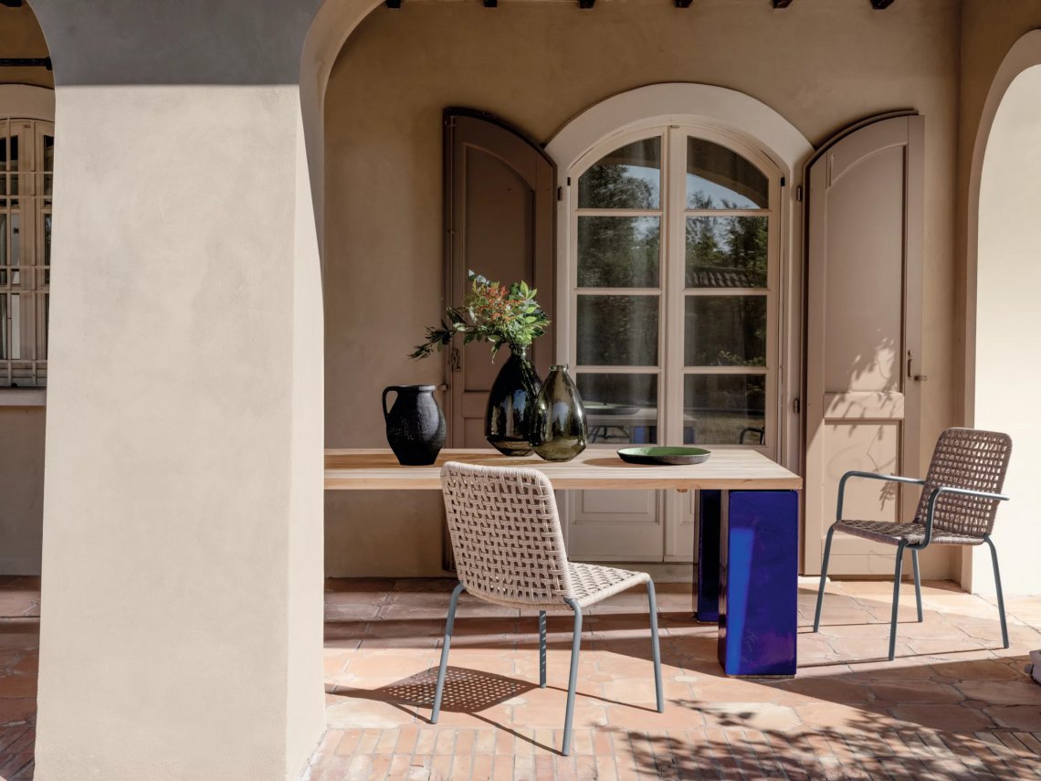 Semplice e raffinata, la famiglia di sedie Straw 23/24, con e senza braccioli, si contraddistinguono per la struttura in tubolare di alluminio verniciato Slate. Un prodotto snello e leggero rivestito con un intreccio realizzato a mano con una corda in polietilene a doppia torsione, una fibra dall’aspetto naturale, forte, flessibile e durevole progettata apposta per l’outdoor.