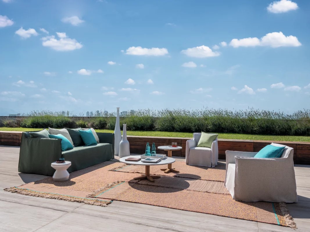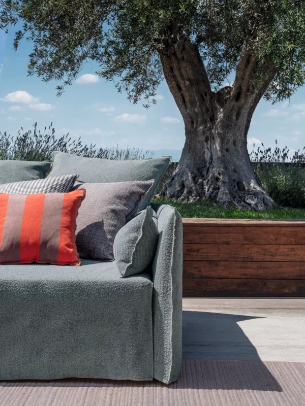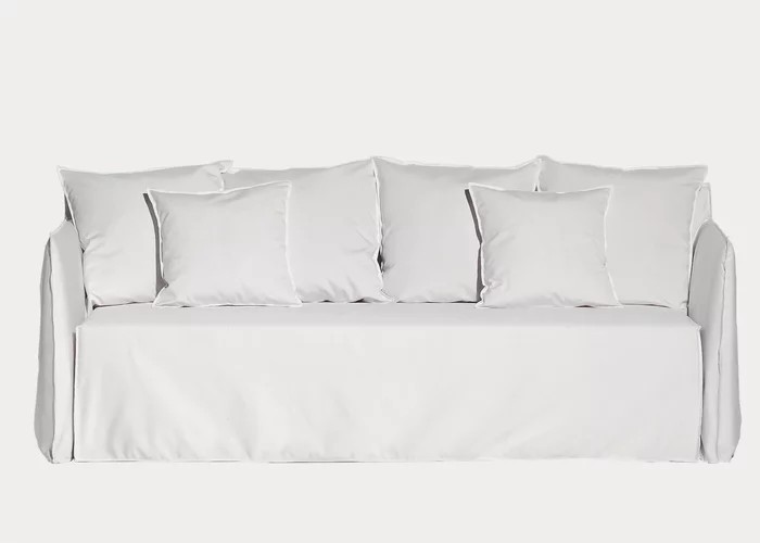 Famiglia di divani imbottiti e sfoderabili, Ghost Out 10/12/16 vantano una seduta comoda ed avvolgente che si sviluppa attorno ad una leggera scocca dai volumi essenziali. Ideati per resistere all’acqua e alla luce solare e per mantenere nel tempo la loro forma e la loro estetica, sono disponibili in diverse dimensioni, da due o da tre posti e con differenti profondità di seduta. Sono caratterizzati da una struttura geometrica in cui la morbidezza è accentuata da cuscini volanti. Caratteristica principale è il rivestimento: una housse oversize il cui profilo è sottolineato dalle cuciture a vista, per svestirsi con facilità e assumere un’immagine ogni volta diversa.